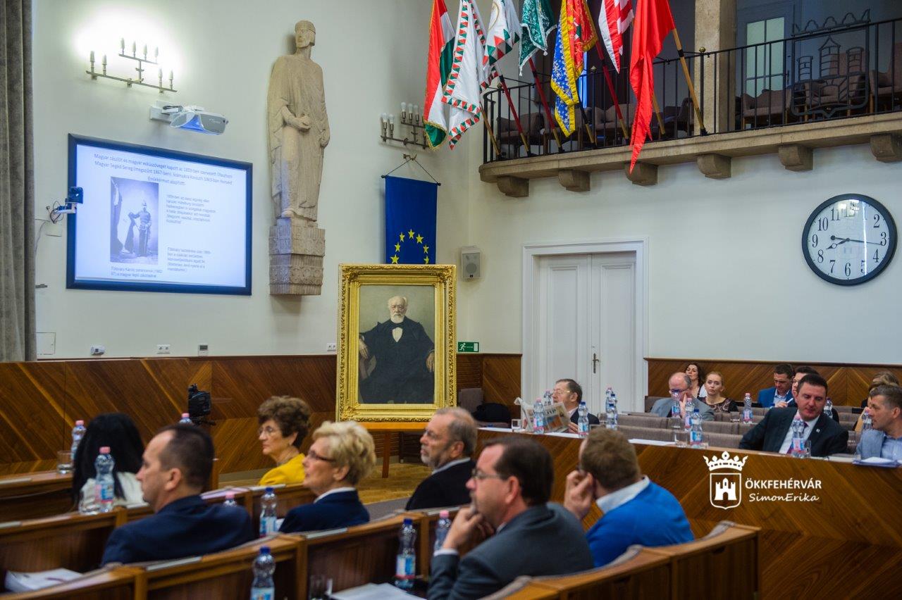 A festmény pénteken a Díszteremben állt, a Közgyűlés pedig megemlékezéssel indult a jubileum emlékére: 1894-ben Székesfehérváron is megállt az a vonat, amely Kossuth Lajos koporsóját hazaszállította, az akkori képviselőtestület pedig gyászközgyűléssel is megemlékezett az emigrációban élt nemzeti óriásról. Életében is sok kötődése volt városunkkal Kossuthnak, ezeket is felelevenítette dr. Demeter Zsófia. A nyugalmazott múzeumigazgató, Székesfehérvár újkori történetének kutatója érdekes, korabeli dokumentumokkal és emlékekkel tűzdelt előadást tartott a Díszteremben.