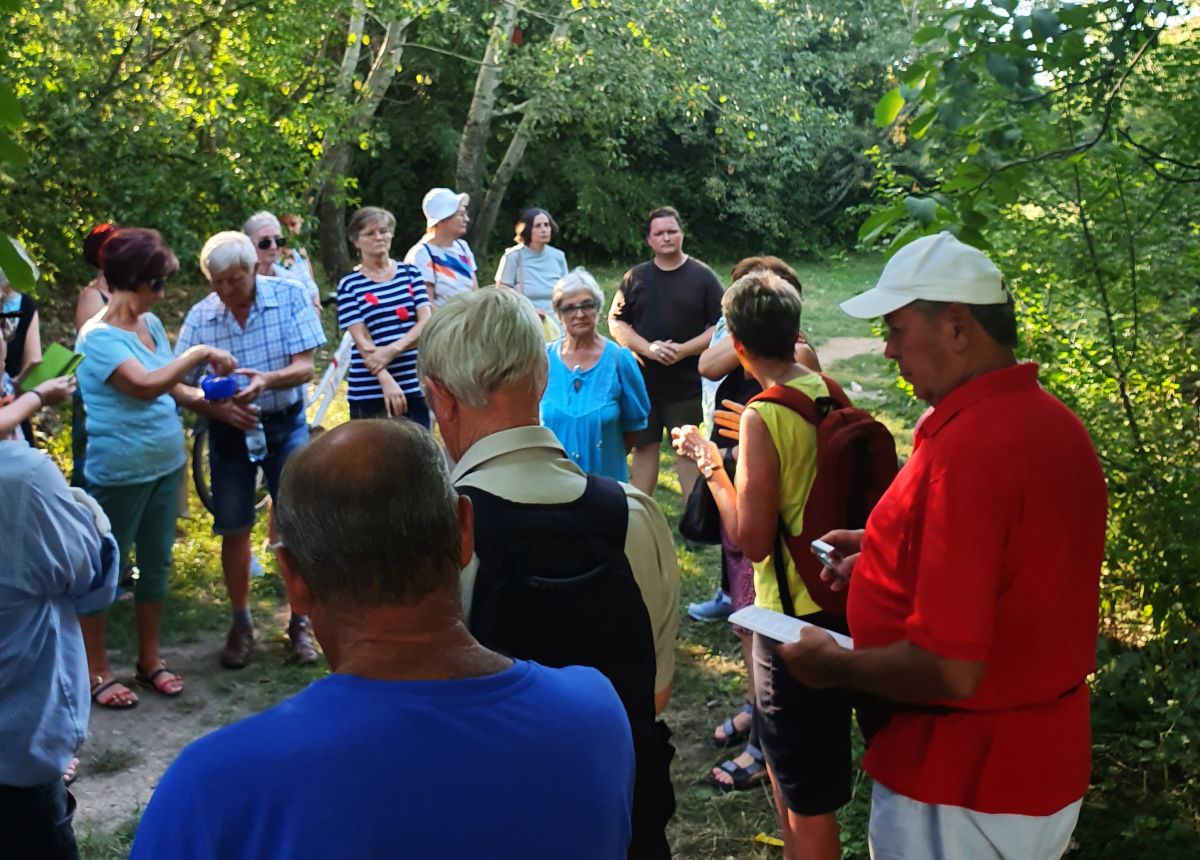A területen található a békalencsés tó is, amihez egy lépcsőn lehet lejutni. Érdekesség, hogy itt a nagy szárazság ellenére is mindig találunk valamennyi vizet – mesél Klára, aki a közel negyvenfős csoporttal augusztus 10-én bejárta a terület zegzugosabb részeit is.