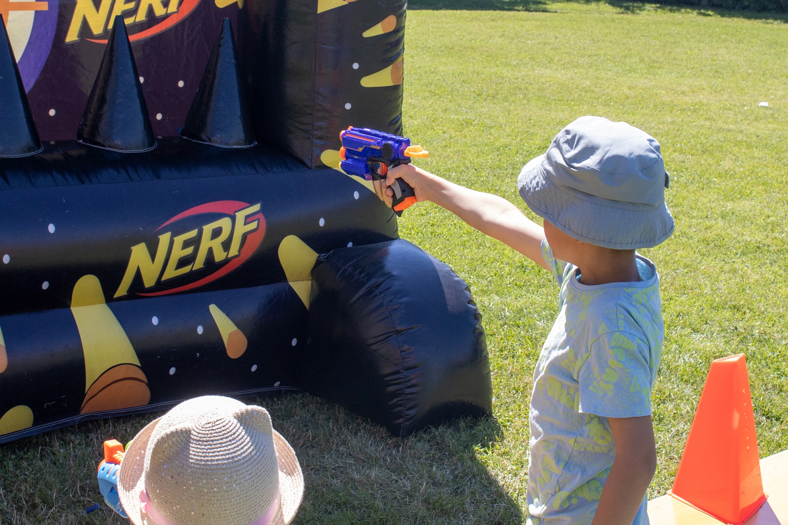 Már kora reggeltől gyerekzsivajtól volt hangos a városrész közösségi központjának kertje. Nerf céllövölde, óriás Legoland, textiltáska-festés, arcfestés, tapadókorongos íj, lengőteke, darts, csocsó és az intézmény saját játszótere várta a gyerekeket – de a legnagyobb sláger a Happycopter volt: sokan szerették volna átélni a repülés élményét.