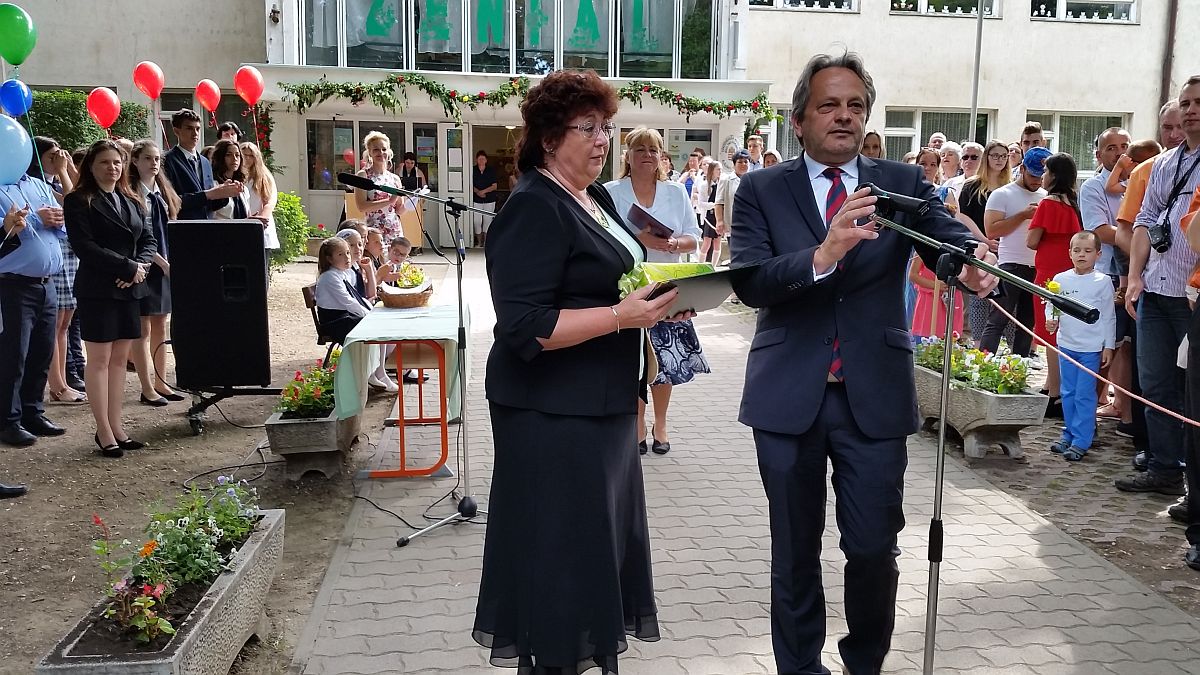 Ballagási ünnepséget rendeztek szombaton a Zentai Úti Általános Iskolában, ahol a nyolcadikas diákok búcsúztak iskolájuktól és tanáraiktól. A ballagáson köszöntötték az iskola nyugdíjba vonuló igazgató-helyettesét, Fülöpné Deák Juliannát is, aki Vargha Tamás honvédelmi miniszter helyettestől, Székesfehérvár országgyűlési képviselőjétől vehette át a honvédelmi miniszter által adományozott elismerést munkájáért.
