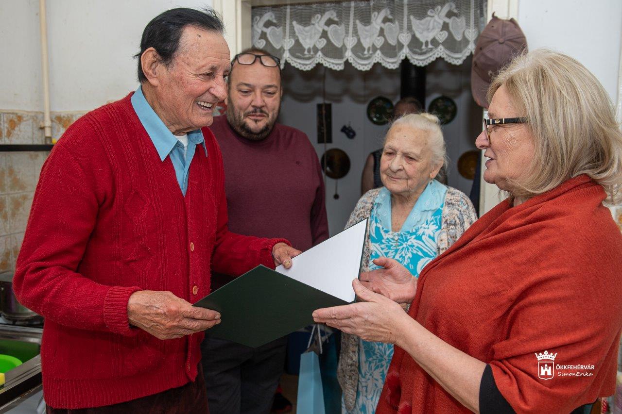 Saját készítésű süteményekkel, üdítővel, pezsgővel várta a köszöntésre érkezőket maroshegyi otthonában Károlyi László és felesége, Katalin. Az 1934. november 8-án Székesfehérváron született ünnepeltnek Brájer Éva, Maroshegy önkormányzati képviselője adta át Orbán Viktor miniszterelnök jókívánságokkal teli levelét és Székesfehérvár ajándékát, majd még sok-sok, egészségben eltöltött esztendőt kívánt a születésnaposnak.