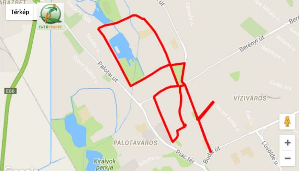 Bregyó-köz – Malom utca – Zichy liget – Dózsa Gy. út - Várkörút – Rákóczi u. (a József A. utca körforgalom előtti kijelölt gyalogos átkelőhelyig) – Várkörút (Budai útnál visszafordulás) – Várkörút vissza Mátyás király körút 25. számig – Mátyás király körút járda - Fő utca – Városház tér (Országalma) – Liszt F. utca – Mátyás király körút – Zichy liget (ügyvédsor) – Mészöly G. utca – Ligetsor - Bregyó-köz.