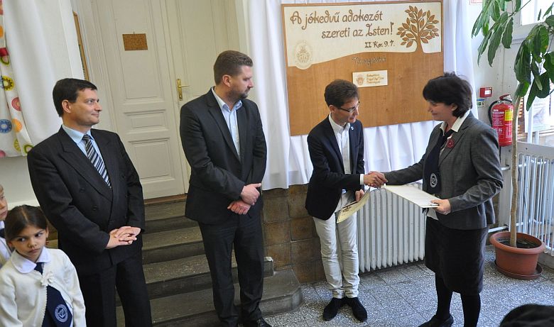 A támogatók falának ötlete a szülői munkaközösség ötlete volt - mondta Szanyó Gáborné iskolaigazgató. "A város támogatásából az informatikai eszközparkot bővíti az intézmény, így elérhetővé válik a digitális tankönyvek használata is az iskolában."