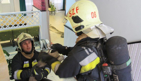 A József Attila Kollégiumban gyakorlatoztak a tűzoltók