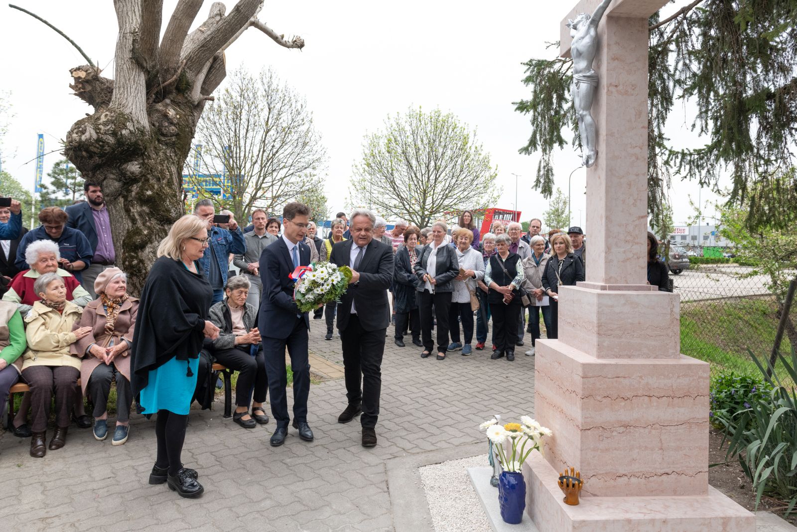 Az ünnepség végén, a maroshegyi lakókból szerveződött kis énekkar húsvéti énekét követően dr. Cser-Palkovics András polgármester és Vargha Tamás, Székesfehérvár országgyűlési képviselője koszorút helyezett el a kőkeresztnél. Az ünnepségen részt vettek Róth Péter és Mészáros Attila alpolgármesterek.