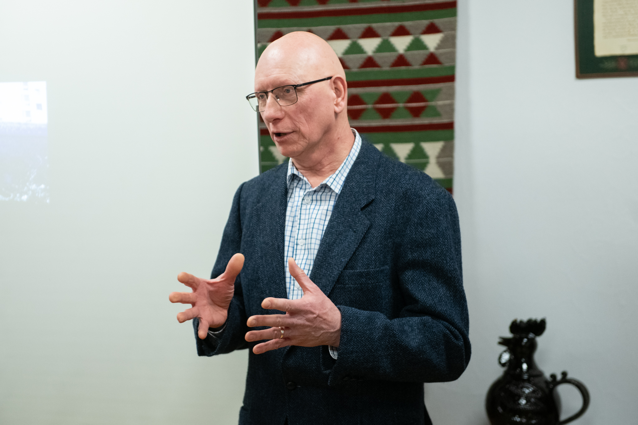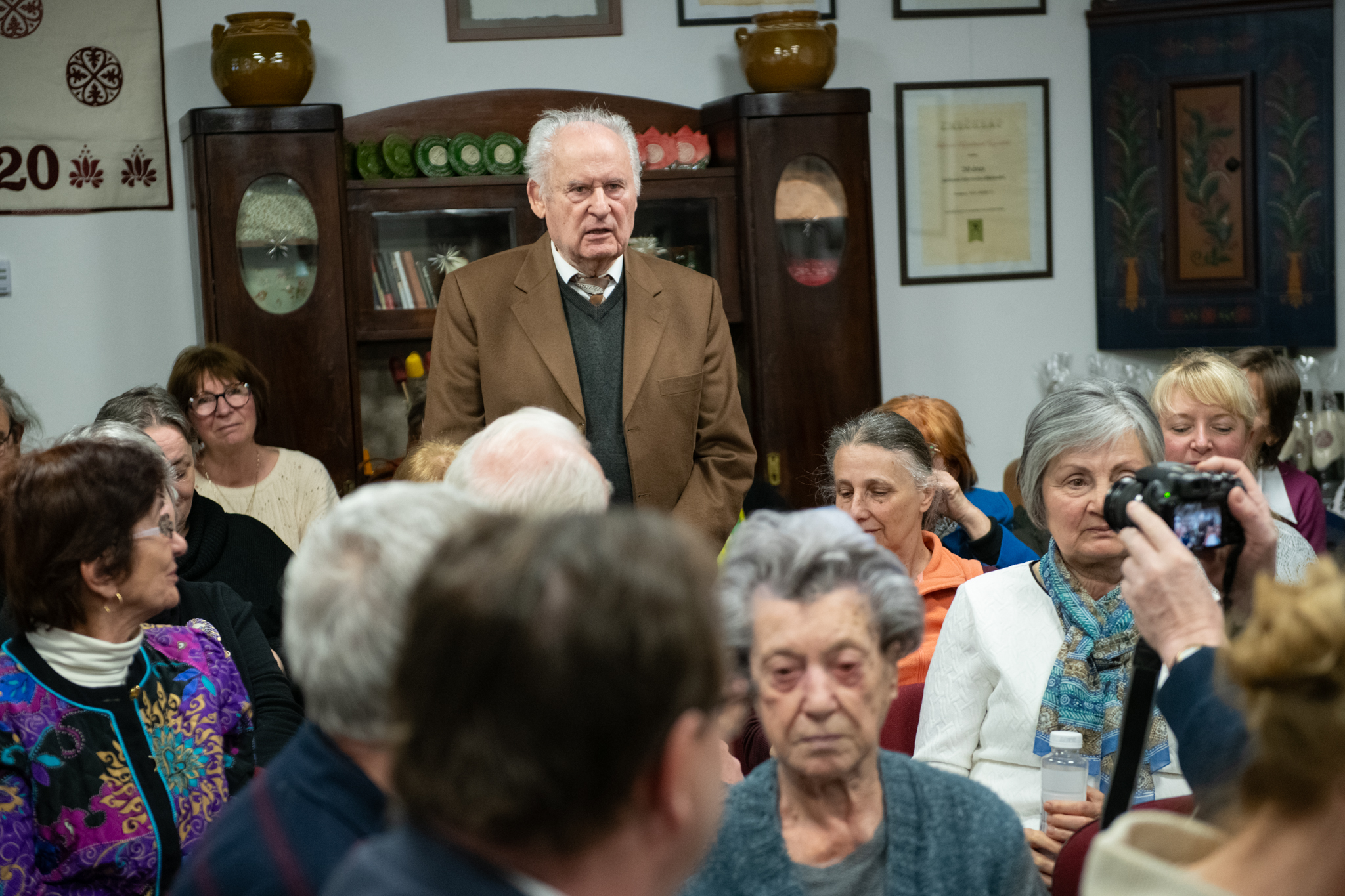 A Rác utcai egykori lakóház, majd az 1984-es újjáépítést követően bányász vendégház, később pékségnek otthont adó épület történetéről Gulyás Antal mesélt dióhéjban, felelevenítve milyen sokan dolgoztak együtt munka után, akár éjjel-nappal a Rác utcai kézművesház megteremtésén. A hallgatóság fotókon követhette végig a felújítás menetét, és Gyulyás Antal megmutatta a ház első berendezési tárgyát, azt a piros viharlámpát, amelyet még az építkezés idején vettek.
