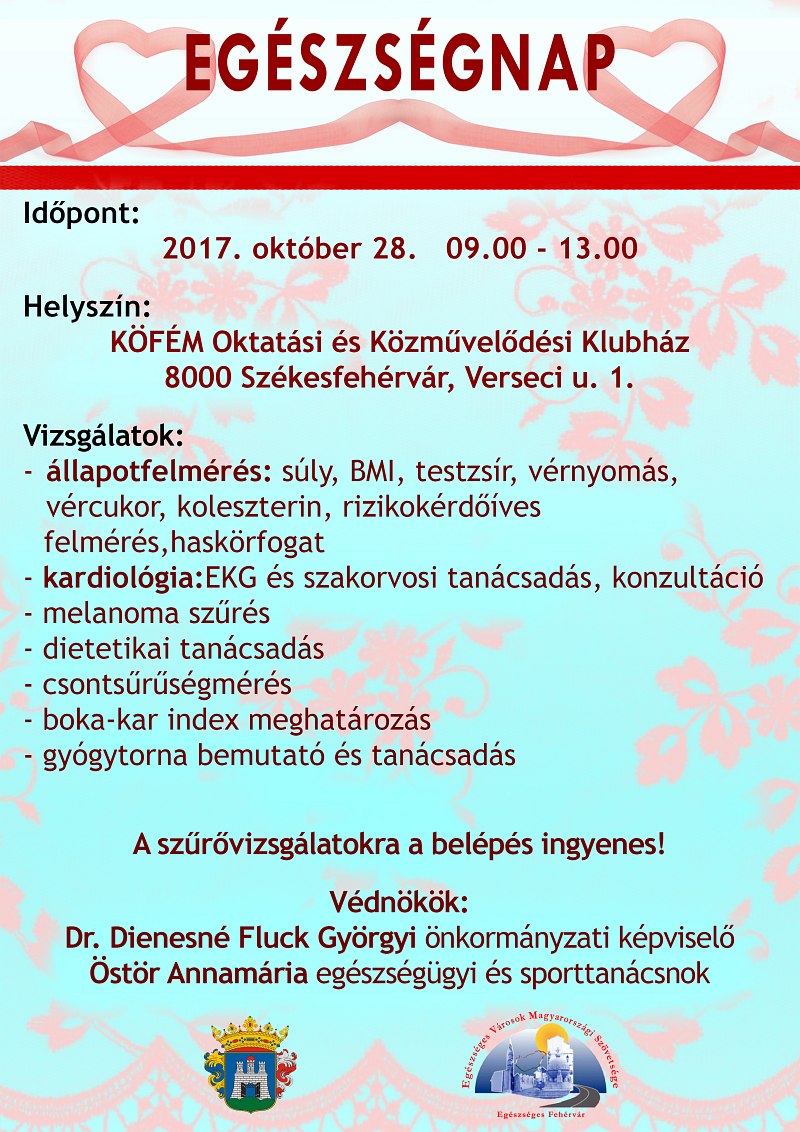 „A városrészi egészségnapokra a legkeresettebb és a legszükségesebb szűrővizsgálatokat szervezzük. Testsúly-, testzsír-, vérnyomás-, vércukor-, és koleszterinszint-mérés valamint BMI-számítás mellett csontsűrűség-mérés és az erek állapotát vizsgáló boka-kar index számítása is lesz a jövő szombati állapotfelmérések között, de idén is helyet kap a programban a kardiológia, EKG-val és szakorvosi konzultációval. A rendezvényeken mindig hangsúlyos szerepe van a szűrések mellett az egészségmegőrzésnek, így gyógytorna-bemutatót is tartanak a délelőtt folyamán.” - mondta el a sajtótájékoztatón Östör Annamária, Székesfehérvár Önkormányzatának egészségügyi és sport tanácsnoka.