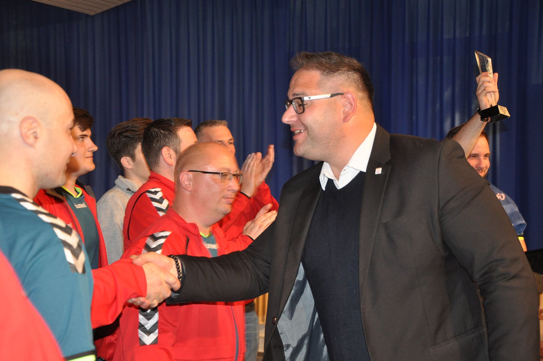 A bajnokcsapatot a város nevében Mészáros Attila, alpolgármester köszöntötte és adta át a bajnoki aranyérmesnek járó kupát.