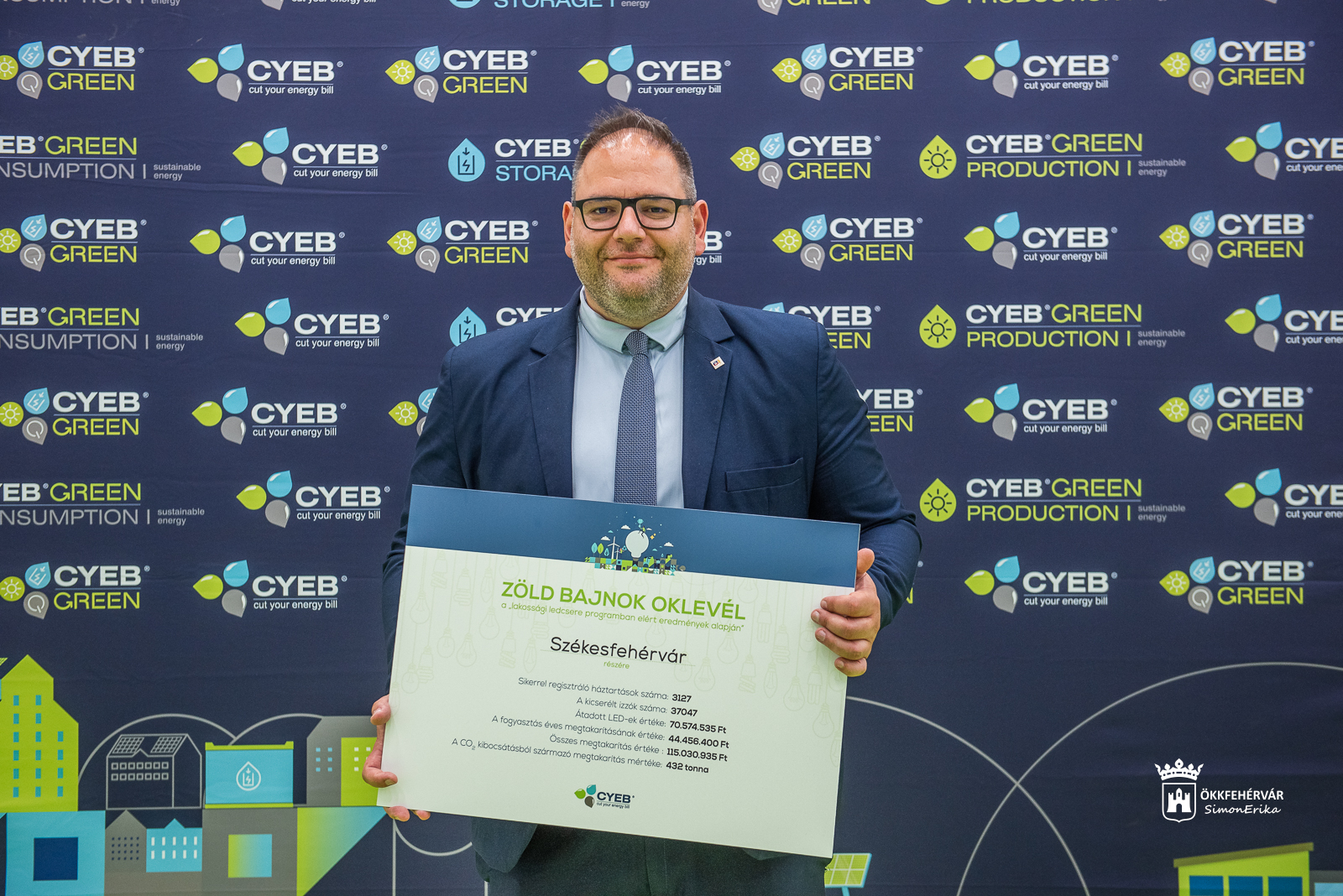 A végső energia legnagyobb felhasználója hazánkban a lakosság. A CYEB Kft. társadalmi felelősségvállalási programjának keretében hirdette meg az energiatakarékos izzócserét két évvel ezelőtt. A lakossági LED-csereprogram résztvevői meghatározott feltételek mellett ingyen juthattak LED-ekhez, és cserélhették le a háztartásaikban található régi izzókat új, korszerű fényforrásokra. A programhoz Székesfehérvár Önkormányzata is csatlakozott. A CYEB kedden egy ünnepség keretében köszöntötte együttműködő partnereit.