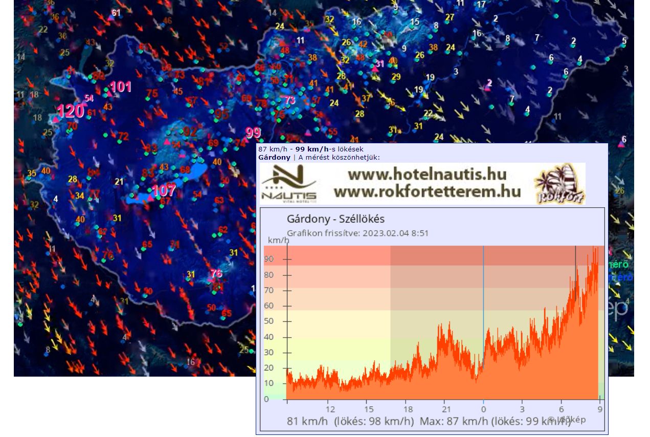 Gárdonyban 99km/órás szelet mértek szombaton reggel