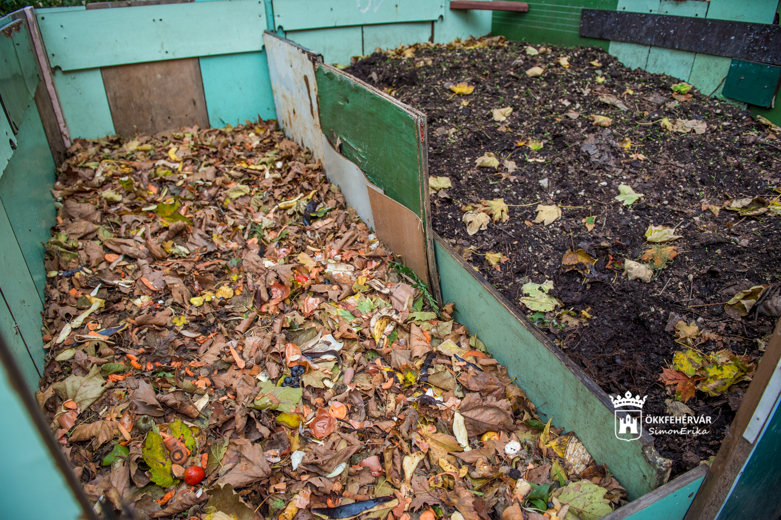 Délután az iskola komposztálója melletti zöld területen Varga Gábor mutatta be a zöldhulladék otthoni hasznosításának egyszerű módját: „Nagy problémát jelent az évről évre fölhalmozódó zöldhulladék. Hulladéknak hívják a lombot és a kertből összeszedett fűnyesedéket, aminek valójában nem a hulladéklerakóban, hanem a talajban van a helye.”