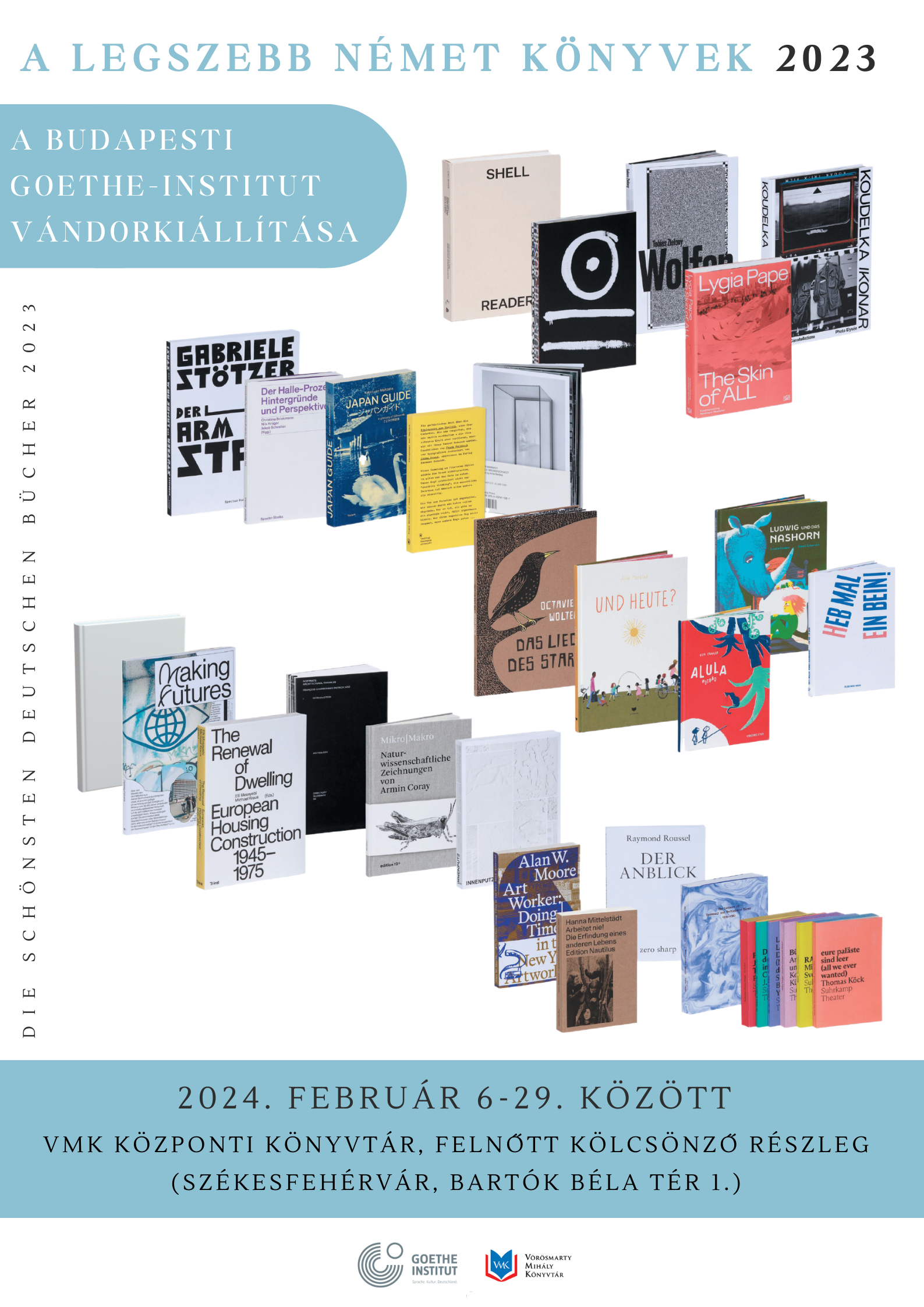 A legszebb német könyvek 2023 című válogatás a tavaly német nyelven megjelent, válogatott kötetek között kalauzolja az olvasókat. „A versenyt 1929-ben alapították és 1966 óta a Stiftung Buchkunst Alapítvány gondozza. Két szakértői zsűri választja ki az év 25 legszebb kötetét, amelyek példaértékűek a tervezés, a koncepció és a feldolgozás terén, illetve a tervezési és gyártási lehetőségek széles skáláját mutatják be.” – írja a budapesti Goethe Intézet. A 2023-as év díjazott alkotásait havonta más-más városban, könyvtárban – februárban éppen Székesfehérváron – vehetik kézbe a szép könyvek szerelmesei. A köteteket a Bartók Béla téri épületben, a Felnőtt kölcsönző részlegen február 29-ig láthatják az érdeklődők.