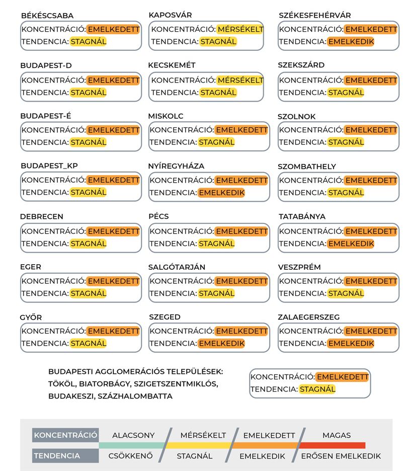 Az NNK tudatta azt is, a koronavírus örökítőanyagának koncentrációja húsz mintavételi hely esetében az emelkedett, míg Kaposváron és Kecskeméten a mérsékelt kategóriába esik.