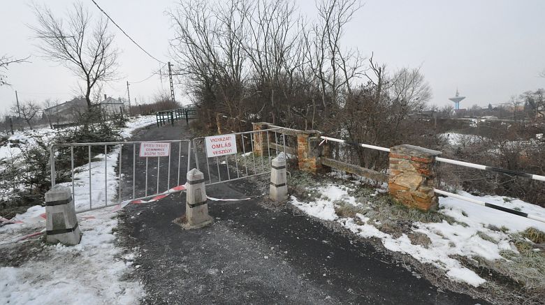 A leszakadt partfal miatt lezárták a Bányató melletti útszakaszt