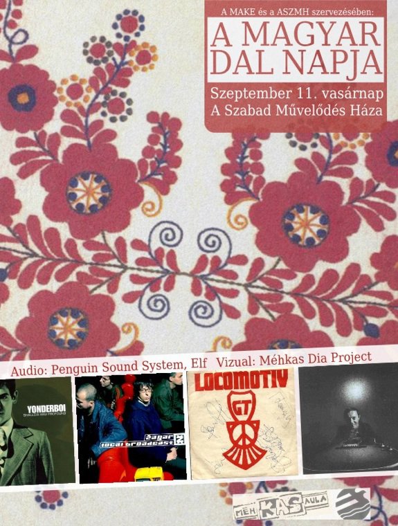 A Magyar Dal Napja alkalmából rendeznek audiovizuális estet A Szabdművelődés Házánál szeptember 11-én vasárnap sötétedéstől 23 óráig. Az esten "jazzoid" zenéket hallhatunk. A zenéről a Penguin Sound System, a vizuális effektekről a Méhkas Dia Project gondoskodik. Az esten csak magyar zenéket mutatnak be Szabó Gábortól Ákos Stefin át Zagaron keresztül a Kerekes Bandig, csak bakelitről.