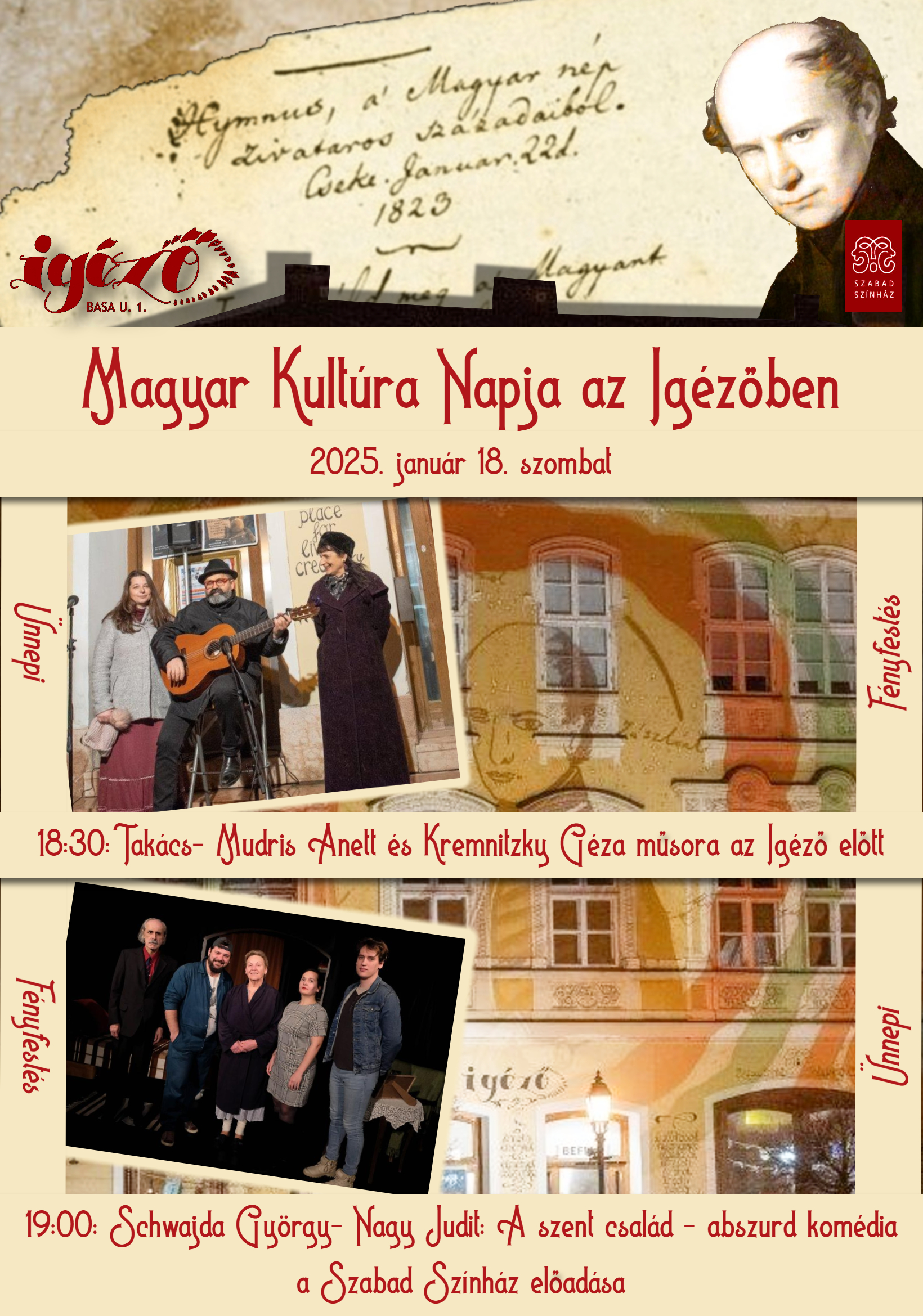 A Szabad Színház január 18-án hívja, várja a nézőket a magyar kultúra ünneplésére.