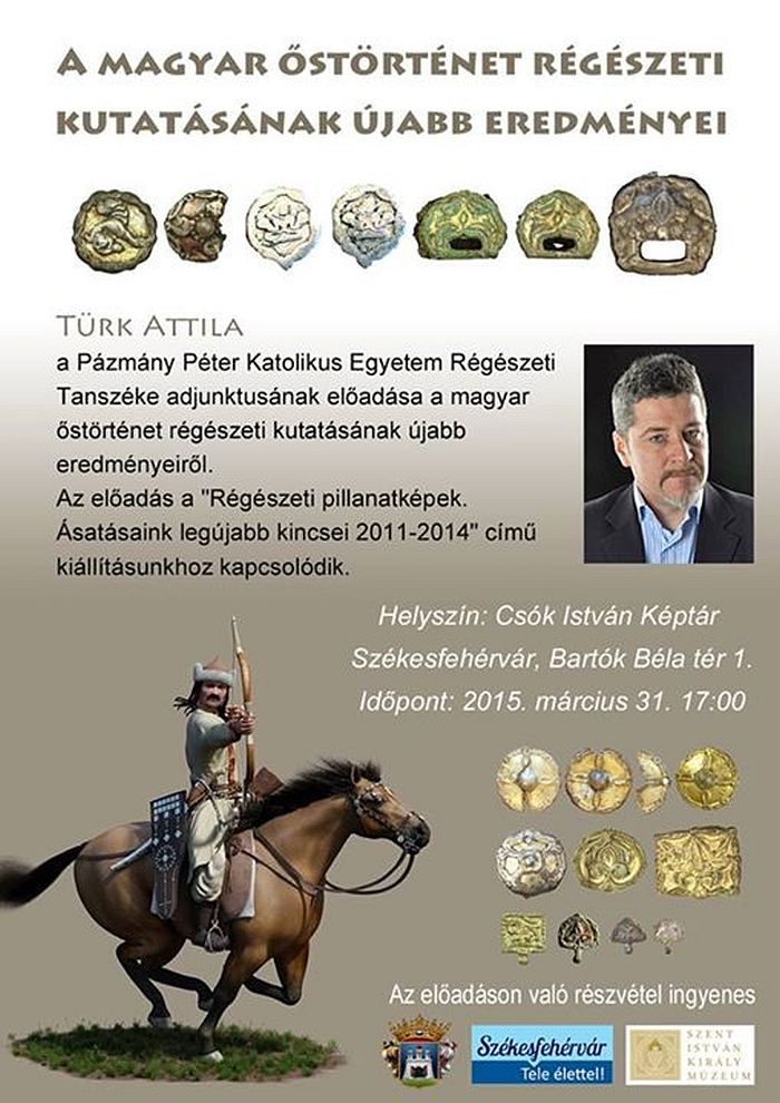 Türk Attila előadásában a magyar őstörténet kutatásának újabb eredményeiről számol be március 31-én a Csók István Képtárban. A Pázmány Péter Katolikus Egyetem Régészeti Tanszéke adjunktusának előadása a "Régészeti pillanatképek. Ásatásaink legújabb kincsei 2011-2014" című kiállításhoz kapcsolódik. Az előadáson való részvétel ingyenes!