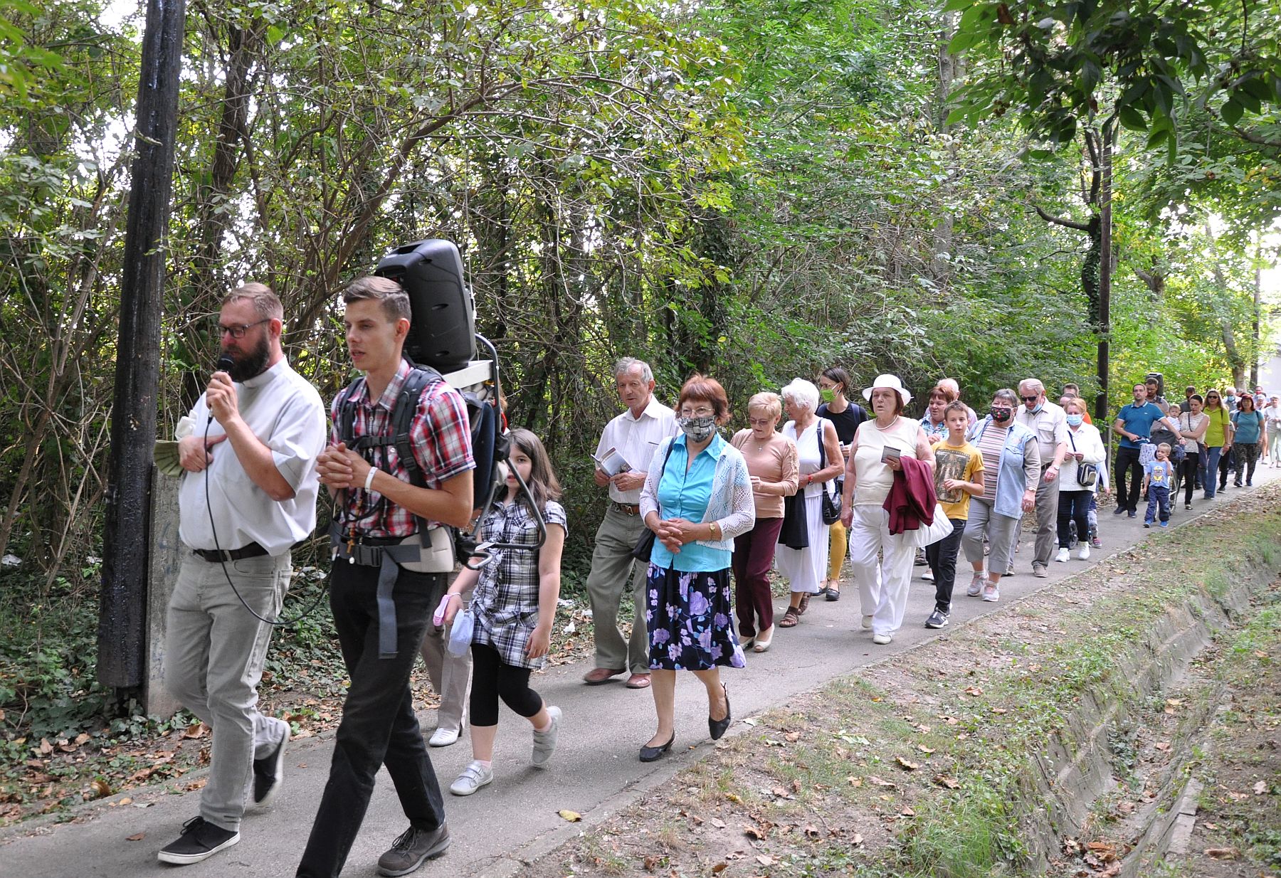 Indító gondolatokat és áldást követően népes zarándokcsoport kelt útra vasárnap délután az Öreghegyi Plébánia udvaráról, hogy a Máriavölgyi kegyszoborig imádkozva, énekelve tegye meg a mintegy három kilométeres utat.
