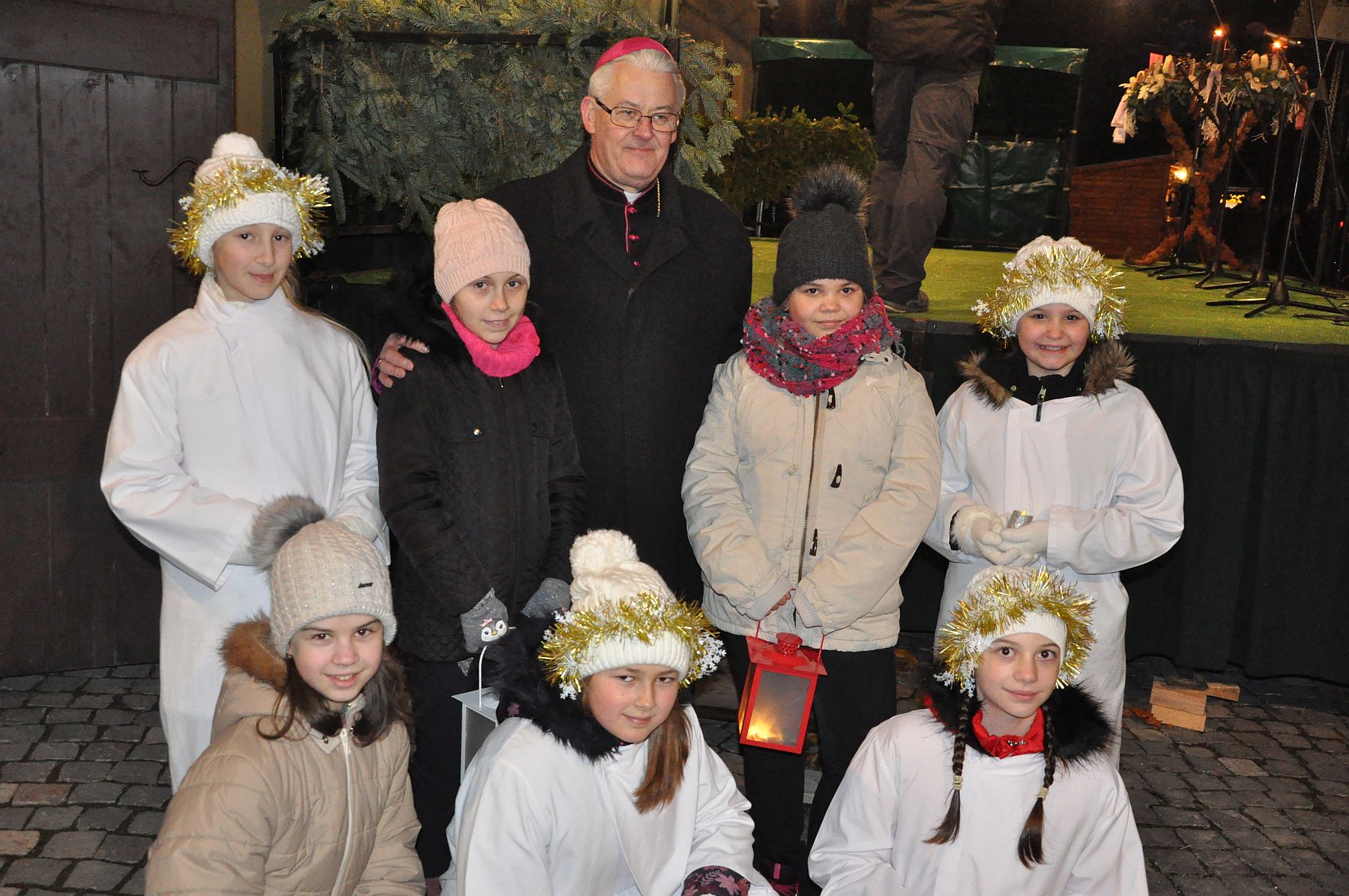 A Püspökség udvarán felállított színpadon Ugrits Tamás, irodaigazgató, pasztorális püspöki helynök köszöntötte a második gyertyagyújtására érkezőket, majd felolvasta a vasárnapi evangéliumot. Advent második hétvégéjén a ráckevei Szent Imre Katolikus Általános Iskola tanulói látogattak el a Püspöki Palota udvarába, ahol versekkel, hangszeres produkciókkal és énekekkel varázsoltak ünnepi hangulatot.A ráckevei Szent Imre Katolikus Általános Iskola tanulóinak adventi műsora után Spányi Antal, püspök mondta el adventi gondolatait.
