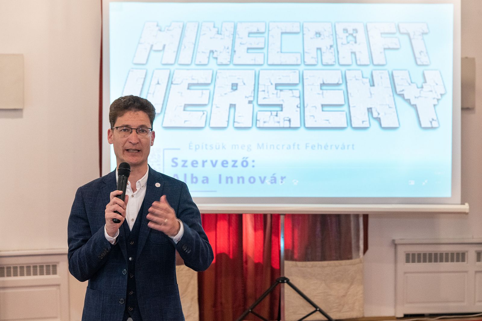 A digitális környezetben igazi alkotások születtek a verseny három hónapja alatt, kezdte összefoglalóját Laufer Tamás. Az Alba Innovár kuratóriumi elnöke hozzátette, az öt évvel ezelőtt született Alba Innovárnak és ennek a versenyek is az a célja, hogy összekösse a múltat a jelennel, a jelent a jövővel. Legyen mindenkinek lehetősége a XXI. században a társadalomban, a gazdaságban sikeresen érvényesülni. A Minecraft versenyről elmondta, hatalmas volt az érdeklődés, hiszen egy hét alatt 140 jelentkezés érkezett, illetve meglepve, de örömmel tapasztalták, hogy nemcsak 12 éven felüliek, hanem alsó tagozatos diákok is versenybe szálltak. Ahhoz, hogy mindenki egy csapatban dolgozzon, a helyszín biztosításával az István Király Általános Iskola nyújtott segítséget az Innovárnak. Laufer Tamás gratulált az összes indulónak, külön kiemelve azt a 18 csapatot, amelyik célba ért a három hónapos maratoni versenyen.