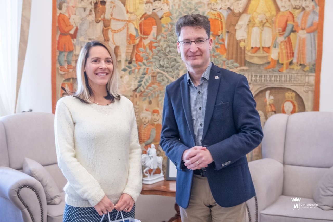 Mórocza Andreát és férjét, Strifler Attilát fogadta a Városházán szerdán dr. Cser-Palkovics András polgármester.