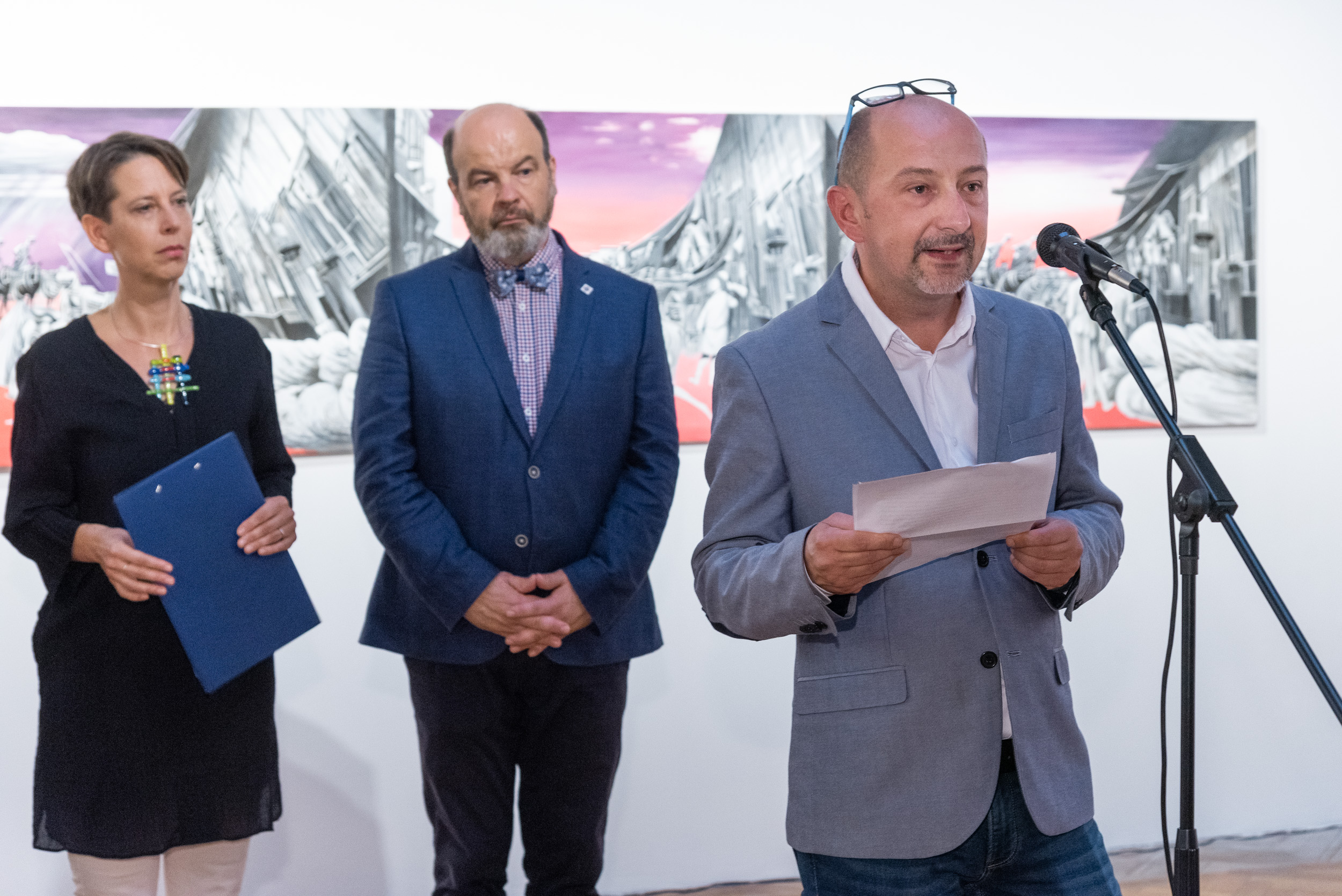 Gellén Miklós Gábor költő a megnyitón a "hely szellemének engedelmeskedve" Pilinszky Jánost idézte meg, aki 40 esztendeje hagyta el "a siralomvölgyet, elvive magával verseinek esszenciáját, a csendet, az egyetlen hiteles beszédet, amit mi már nem ismerünk." "Mert hiába takartuk el az arcunkat FFP 2-es maszkokkal, nem bírtunk csendben maradni, kiabáltunk, dudáltunk, rángattuk a kilincset, hangosan követeltük az úgynevezett régi életünket. Azt, amelyik már réges régen megszökött tőlünk, hátra sem fordulva.." - fogalmazott megnyitó beszédében a költő, aki Pilinszky próféciáját is idézte: "Mert elhagyatnak akkor mindenek.." "De ezek a művek itt körülöttünk a szalonban, a fehérváriban ismerik ezt a csendet: menjünk közel hozzájuk, és hallgassuk meg őket alázattal és figyelemmel. Tanuljunk tőlük, hátha van remény.." - zárta beszédét Gellén Miklós Gábor.