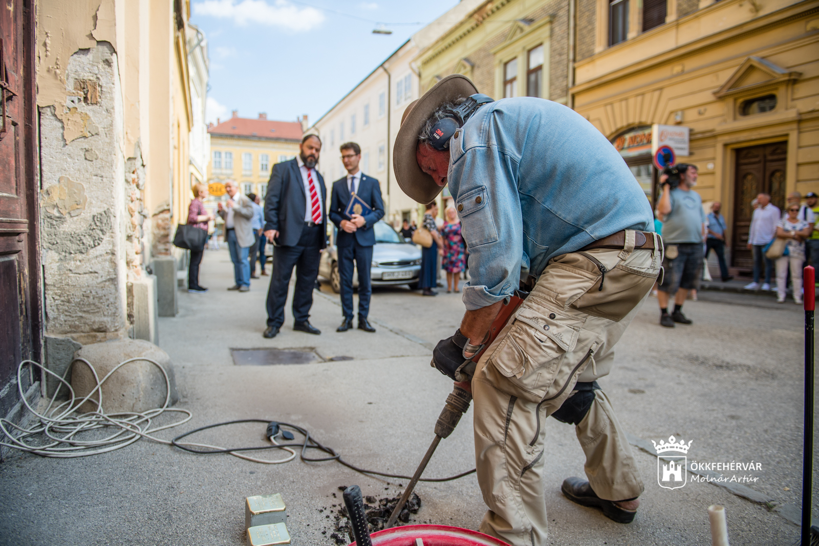 A Gunter Demnig szobrászművész által betonból készített, felső oldalán rézlappal applikált emlékjelet csendes ünnepség keretében helyezték el, ahol felolvasták a holokauszt áldozatául esett család tagjainak neveit, születési és halálozási dátumait is. Az ünnepségen részt vett a botlatókövek alkotója, Gunter Demnig német képzőművész, Radnóti Zoltán főrabbi, a Budapesti Zsidó Hitközség Rabbisága igazgatója, valamint Cser-Palkovics András polgármester is.