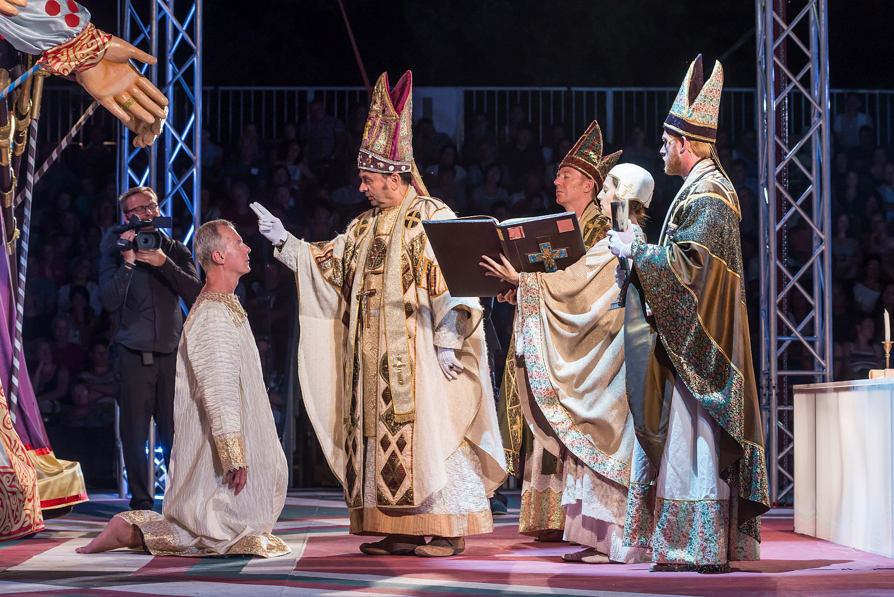 Először, mint szertartásmester vettem részt benne, azután koronázó érsekként és voltam már többször narrátor. Szikora Jánossal régóta ismerjük egymást, Miskolcon 1984-ben ő rendezte a legendás Rómeó és Júlia előadást, amelyben én Rómeót játszottam, és valószínűleg úgy gondolta, hogy ezeket a történeteket jól el fogom tudni mondani.