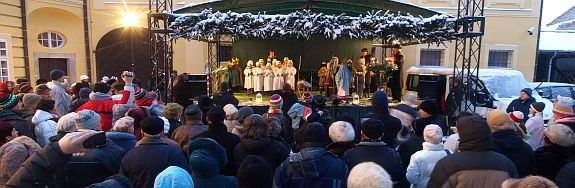 A hóesés és a hideg ellenére sokan látogattak ki az Adventi Udvarba, hogy részt vegyenek az idei év utolsó adventi ünnepségén. A színpadon a három királyok és a kis Jézus születésének története elevenedett meg, majd Spányi Antal megyéspüspök beszélt az ünnep fontosságáról a jelenlévőknek.