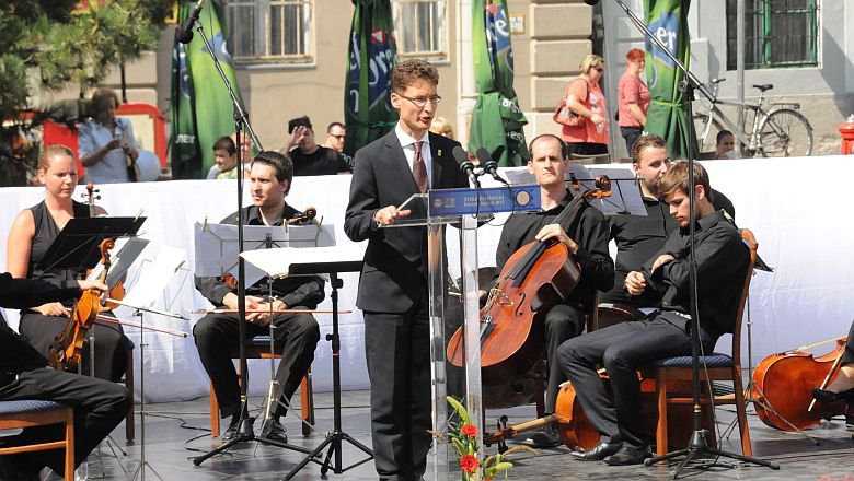Az ünnepséget megelőzően a miniszterelnök és a kormánytagok megtekintették Székesfehérvár felújított Fő utcáját is.A miniszterelnök ünnepi beszédében kiemelte: nagyra becsülik a város történelmét, és elismerik azt a vállalkozó kedvet és életerőt, amelynek a fehérváriak újra és újra bizonyságát adják. Úgy vélte: a székesfehérváriak vállalkozó kedvéről és életerejéről vall, hogy az elmúlt években 807 kisebb és nagyobb fejlesztést indítottak a kormánnyal közösen, ebből 378-at meg is valósítottak. Hozzátette: a hétfői kihelyezett kormányülésen Cser-Palkovics András polgármester is részt vesz, így ez a szám tovább gyarapodhat. A kormányfő megjegyezte: Székesfehérvár iránti tiszteletük fejeződött ki abban a korábbi döntésükben is, amellyel a város adósságának 70 százalékát, 9,5 milliárd forintot átvállaltak, "kiváltva ezzel a várost a fenyegető adósrabszolgaság megpróbáltatásaiból".