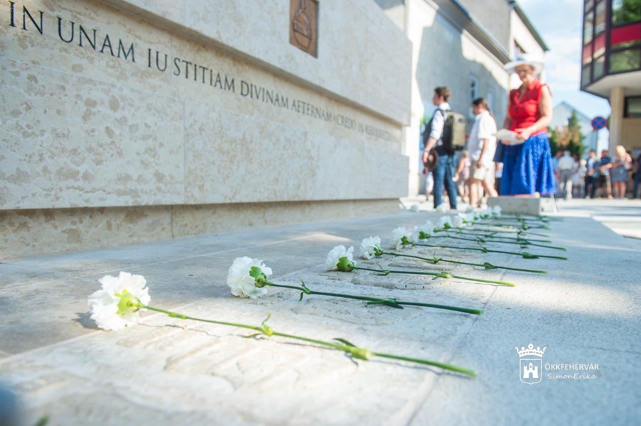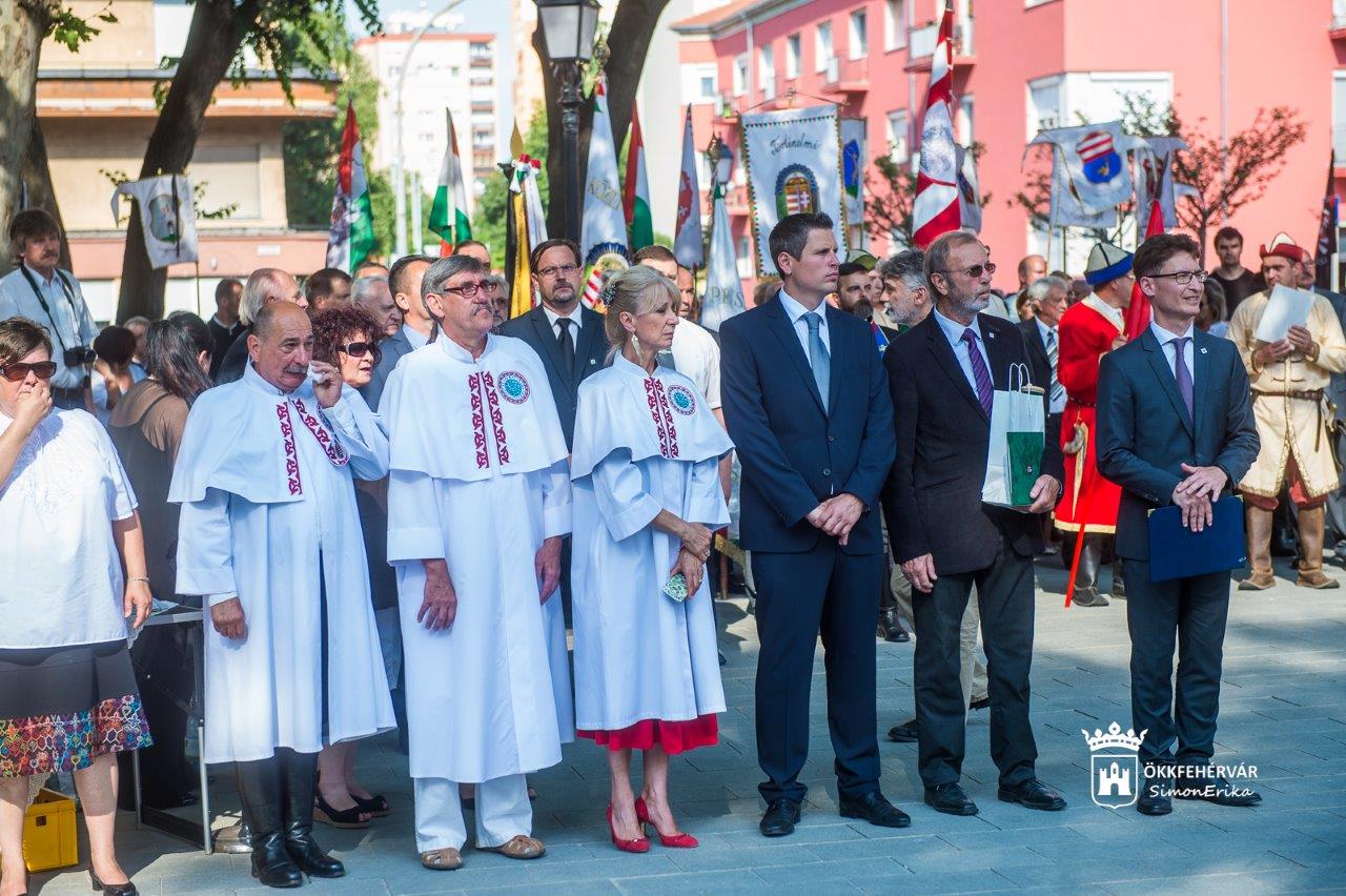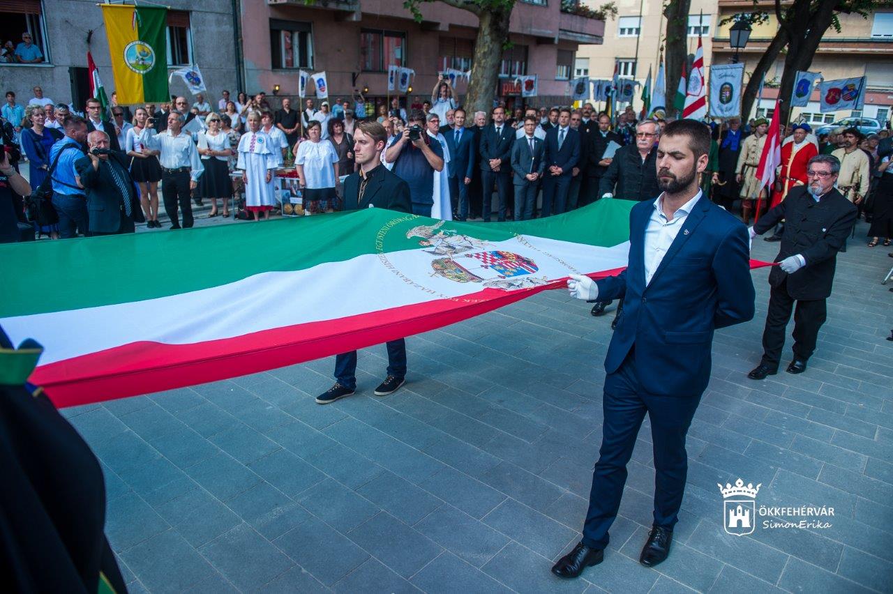 Az ünnepséget megelőzően a Magyar Honvédség Székesfehérvár Helyőrségi Zenekara, a Vox Mirabilis Kamarakórus és Bartal Dóra, népdalénekes előadását hallhatták a megjelentek. „A székesfehérvári Országzászló tér kialakítása 1934-ben kezdődött. E helyütt állt egykor a székesfehérvári vár Budai kapuja. A tér kialakításának rendezési tervét Schmidl Ferenc építész készítette. 1936. május 24-én avatták fel az országzászlót, melynek tervezője Rimanóczy Gyula építész volt. Az Országzászló talapzata egy dombon álló kőoltárt jelképezett, melyen az ország pallosa és egy kőből faragott párnán elhelyezkedő Szent Korona nyugodott. A zászló árboca az oltárból nyúlt ki, tetején kettős kereszt volt látható. Az emlékművet a második világháború után megszüntették, átalakították, a teret átnevezték. A közterület a rendszerváltás után kapta vissza eredeti nevét, és lett újra Országzászló tér, de az emlékmű újjáépítésére csak 2018-ban került sor.” - hangzott el az ünnepség kezdetén a megtelt téren.