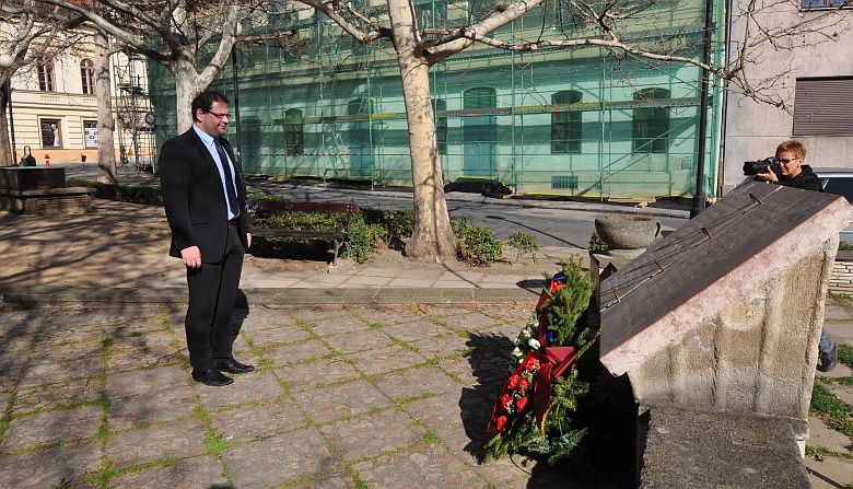 Székesfehérvár Önkormányzata nevében Mészáros Attila tanácsnok, önkormányzati képviselő koszorúzott. Az emlékművet Molnár Tibor készítette márványból, melyen megemlékeznek a fasiszták által elhurcolt és meggyilkolt fehérvári áldozatokról. Az áldozatok nevei a márványba vésve örök időkre emlékeztetnek a 1944-45-ben történtekre.