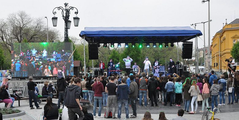 A délelőtti vidám, színes bolondballagást követően a sulizenekarok versenyével folytatódott a II. Fehérvári Ifjúsági Feszt Székesfehérváron. A Zichy színpadon nyolc, középiskolásokból álló együttes lépett fel, és versengett az Arany Dobverő-díjért. A város által tavaly alapított elismerést a Pythagoras vehette át Mészáros Attila alpolgármestertől.