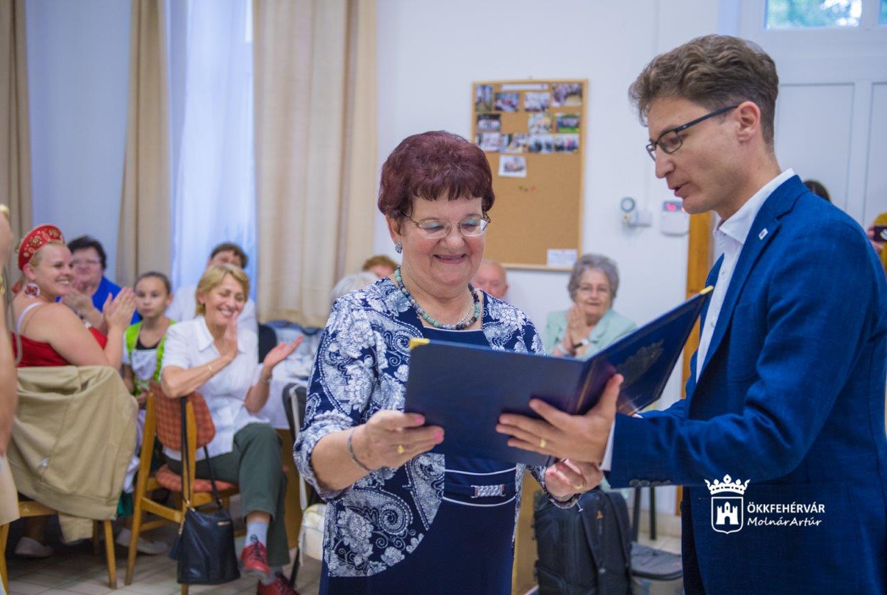 "A klubokban az emberek összegyűlhetnek, a szeretetet, a szolgálatot egymás iránt megmutathatják, finomságokkal lephetik meg egymást. Sok olyan élményt, emléket is gyűjthetnek a nyugdíjasklubokban, ami az embert kíséri, a nehezebb napokon átlendíti. A klubhálózat megteremti a lehetőségét annak, hogy igazi közösségi lényként élhessen az ember." - tette hozzá a polgármester, aki emléklappal ajándékozta meg Heiter Györgyné klubvezetőt.