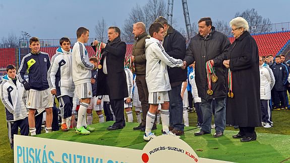 A Real Madrid U17-eseinek Puskás Ferenc özvegye és Orbán Viktor miniszterelnök adta át az érmeket.