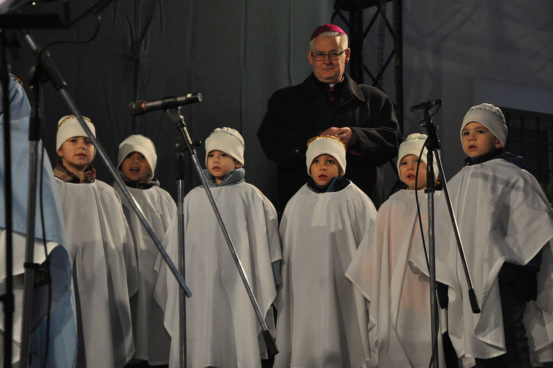 A Püspökség udvarán felállított színpadon Ugrits Tamás, irodaigazgató, pasztorális püspöki helynök köszöntötte a harmadik gyertya meggyújtására érkezőket, majd felolvasta a örömvasárnap evangéliumát.
