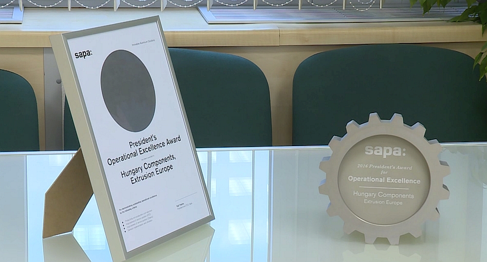 A Sapa Profiles Kft. székesfehérvári gyára kapta meg a vállalat Kiváló Színvonalú Termelésért járó díját a Sapa világszerte működő több mint száz termelési egysége közül. Az elismerést kedden vették át az üzem dolgozói.