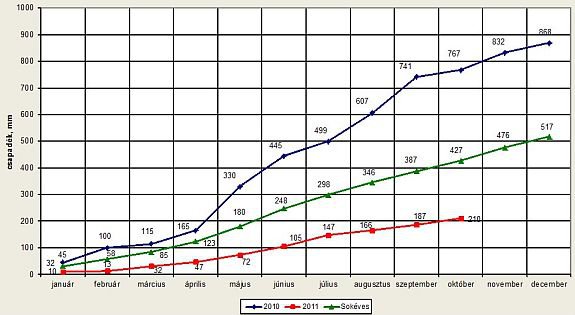 Havi és sokéves csapadékmennyiséget összehasonlító táblázat a cikkben!