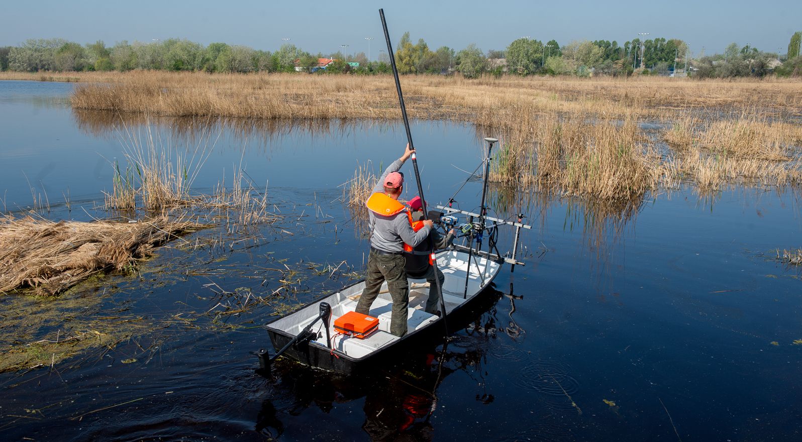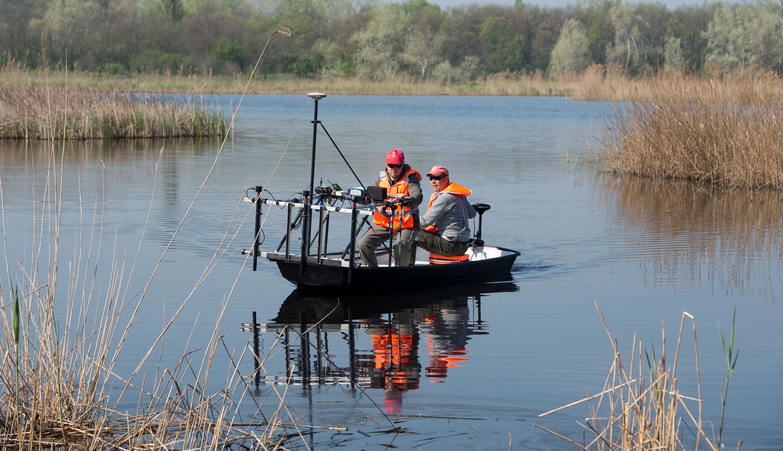 Az az „úszómű” ugyanis, amire a ferromágneses mérőműszerük ráhelyezésre került, az üvegszálas és a szénszálas kialakításnak köszönhetően olyan könnyű, hogy szeles időben felborul, s ez a néhol két méter mély vízben igen veszélyes lett volna. A hajótest alja teljesen sima, annak érdekében, hogy a sekély és a nádas vízfelületen is mozogni tudjon – adott tájékoztatást a vízi jármű paramétereiről a projektvezető. Emellett nem belsőégésű, hanem környezetkímélő elektromos motorral működik.