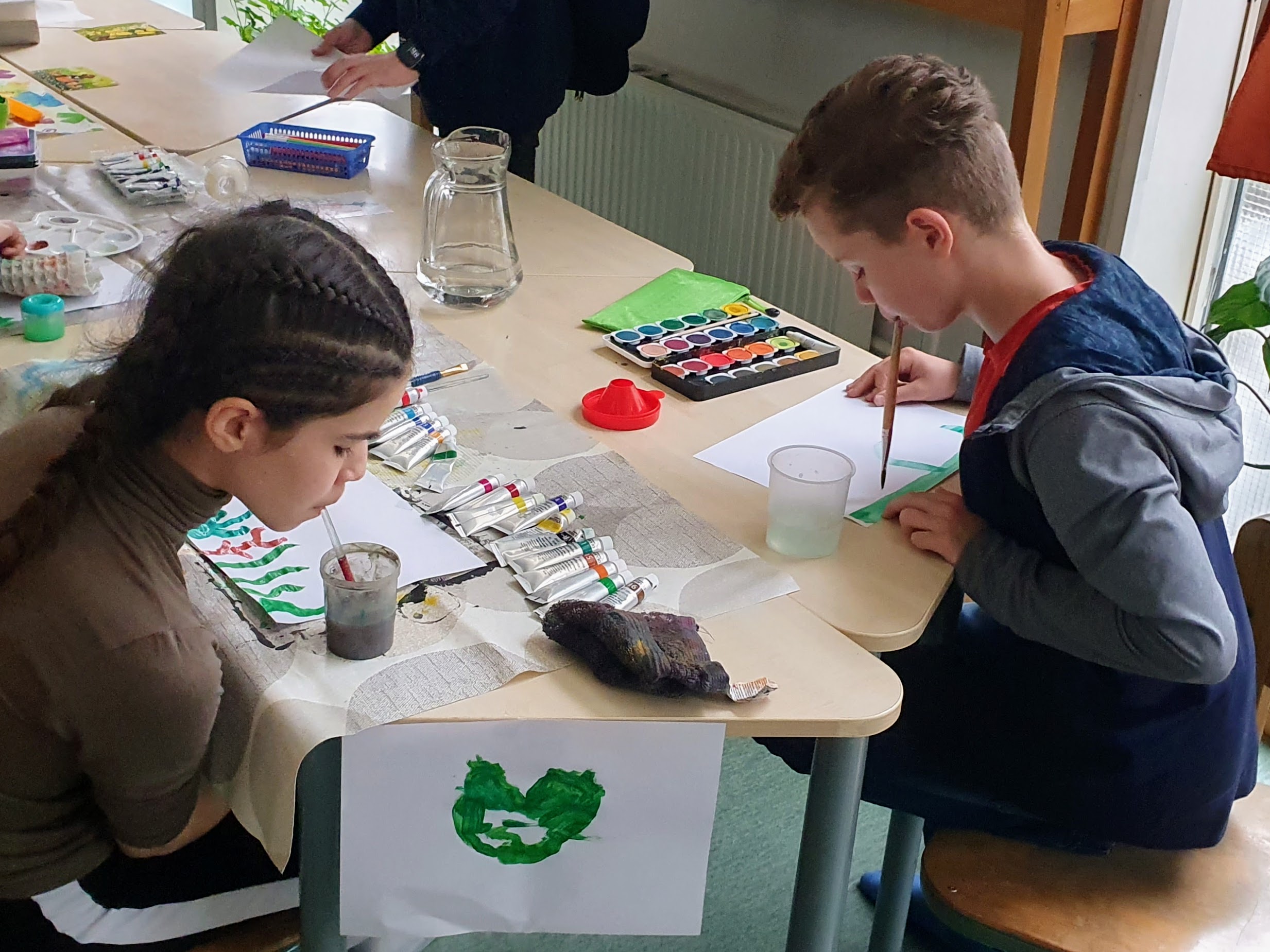 A szájjal és lábbal festést próbálták ki a Hétvezér iskola diákjai