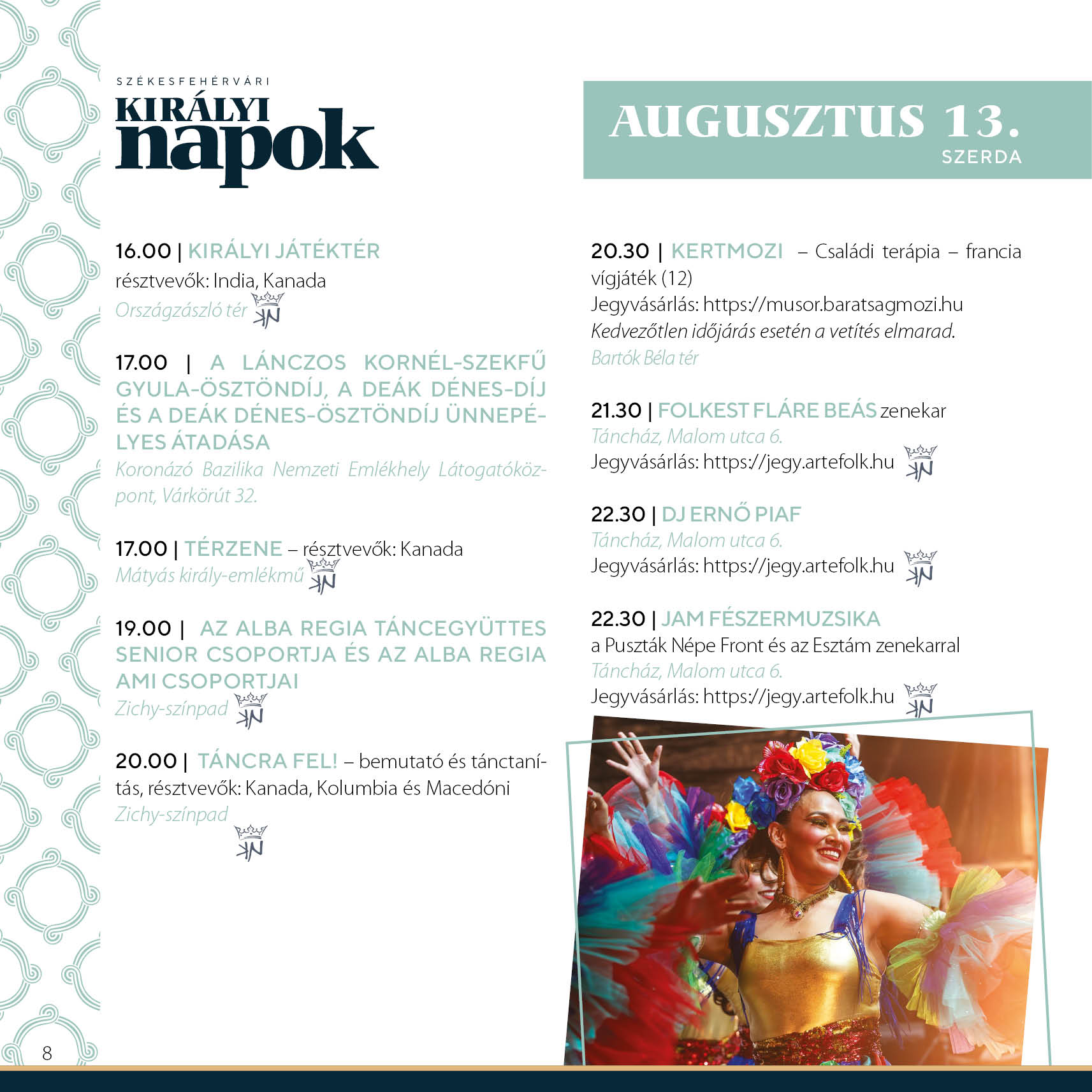 A Székesfehérvári Királyi Napok programjai augusztus 12-én, kedden