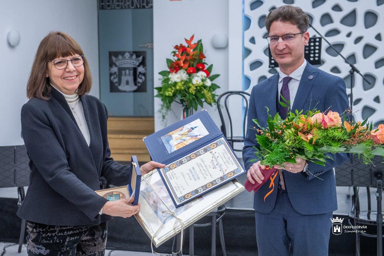 A város kulturális, művészeti értékeinek gyarapítása érdekében végzett tevékenységének elismeréseként kapott díjat a társaság elnöke, Végvári Beatrix vette át.