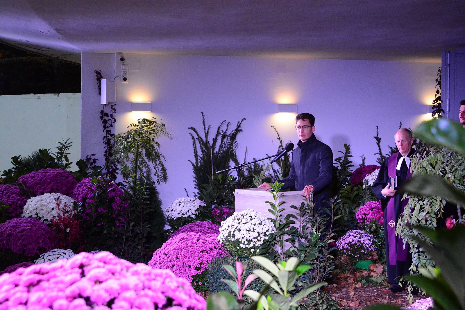 A megemlékezésen Székesfehérvár polgármestere Cser-Palkovics András is megosztotta gondolatait az egybegyűltekkel és köszönetet mondott a Városgondnokság dolgozóinak a munkájáért, hogy a temetőkertekben méltón biztosítják a lehetőséget a megemlékezésre, az elcsendesedésre és az imára. „Köszönöm, hogy együtt emlékezhetünk azokra az emberekre, akik a város polgárai voltak és szolgálták a város egészét.” Arról is beszélt, hogy amikor felelevenítjük a közös emlékeket, történeteket akkor sokunkban van kettős érzés. Amikor elmegyünk a szeretteinkhez, barátainkhoz, megállunk néhány pillanatra és mécsest gyújtunk, az emlékezés mosolyát is megtapasztalhatjuk. „Kívánom, hogy sok történetet meséljünk egymásnak a szeretteinkről, mert ezekben a történetekben itt vannak velünk a mindennapokban. Üzenik azonban, hogy miközben rájuk emlékezünk, ne felejtsük el a környezetünkben élőket, akiknek milyen jól tud esni néhány jó szó. A szeretet, mint örök parancs itt van velünk és nekünk élőknek megadatik, hogy ezt a szeretetet átadjuk egymásnak, gondoskodjunk egymásról. Biztos vagyok abban, hogy elődeink is, akik hitünk szerint most fentről látnak bennünket mosolyogva mesélnek egymásnak történeteket.”