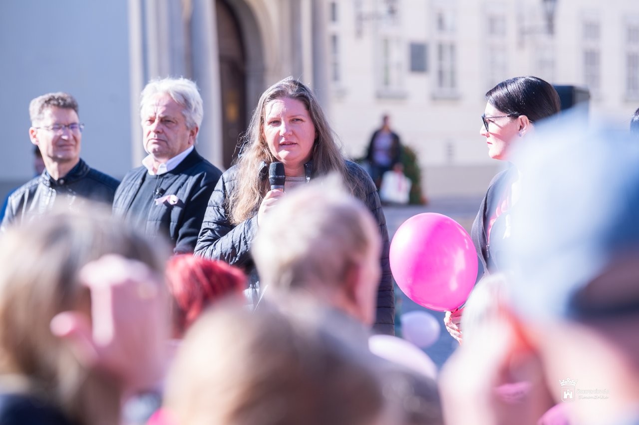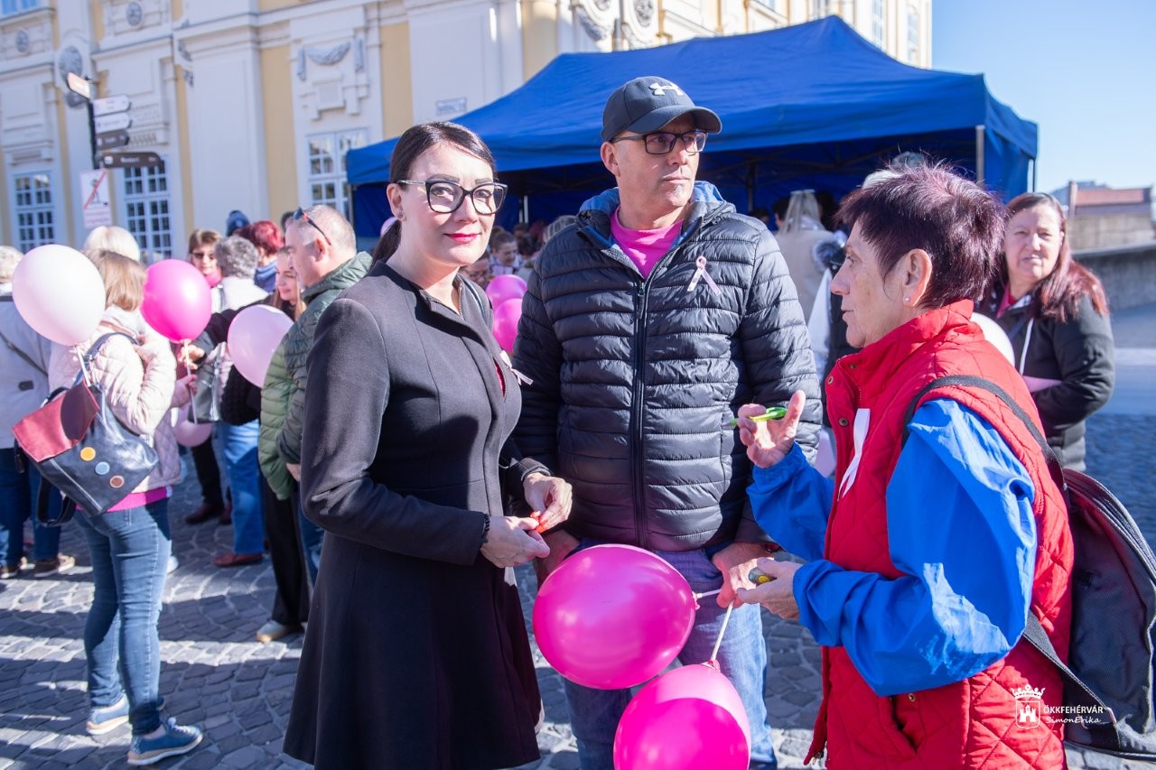 A 45 és 65 év közötti hölgyek kétévente kapnak meghívót a vizsgálatokra, azonban tízből legfeljebb négyen mennek el ezekre. Ezzel a mai programmal is szeretnénk felhívni a figyelmet, hogy a szűréseken való részvétel és az önvizsgálat nagyon fontos. Ez utóbbira érdemes felhívni a férfiak figyelmét is, hiszen az ő esetükben is megjelenhet az emlőrák. Erről dr. Mohai Zsuzsanna, a Fejér Vármegyei Kormányhivatal Népegészségügyi Főosztály osztályvezető-helyettese beszélt, majd az esemény résztvevői ezt követően indultak el a Belvárosba figyelemfelhívó rózsaszín sétájukra.