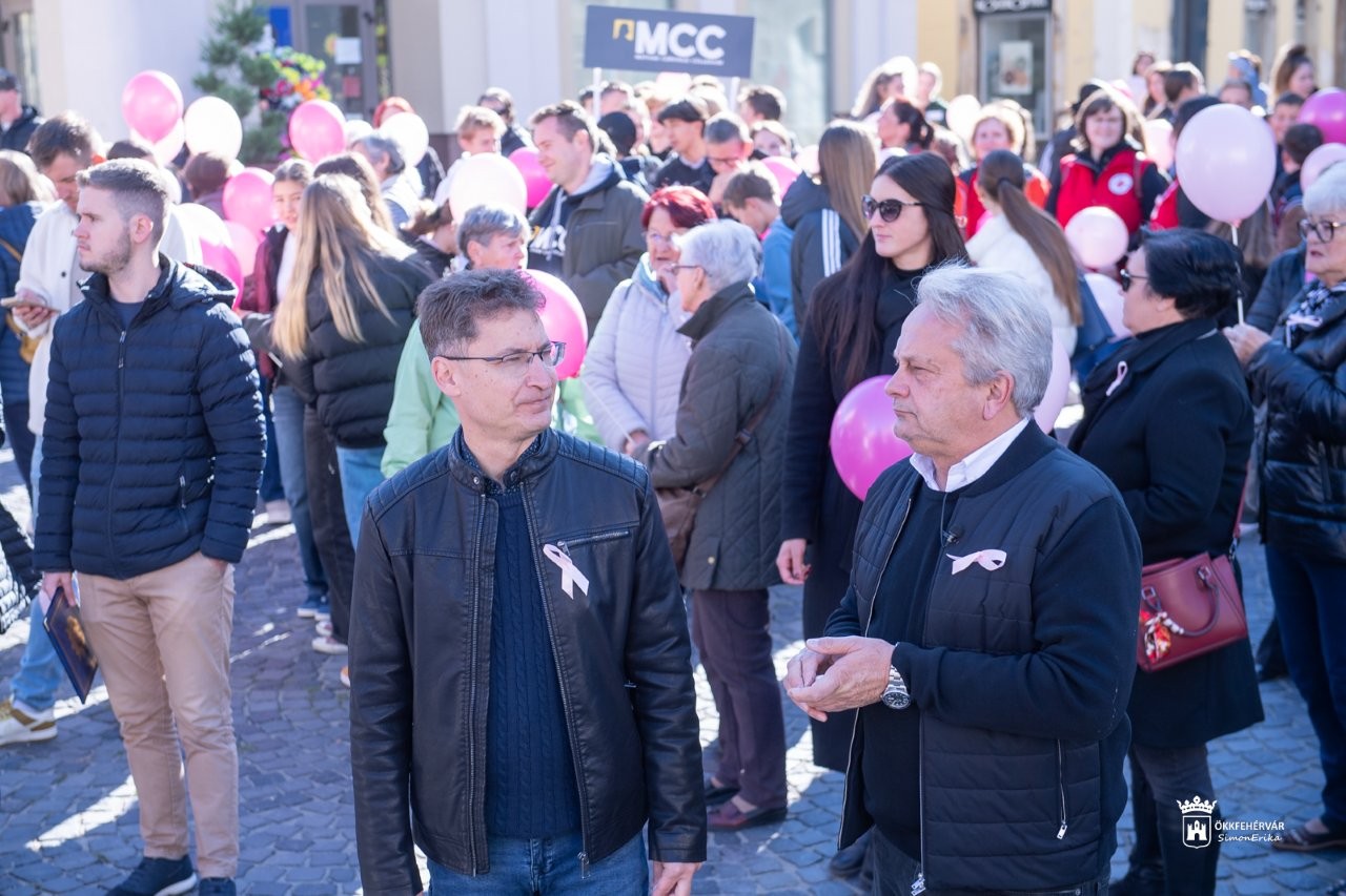 A mellrák elleni séta résztvevői a prevenció fontosságáért, önmaguk egészségéért és a betegséggel küzdők bátorításáért teszik meg lépéseiket. A közösség ereje, hogy a bajban nincsenek egyedül, nagyban hozzájárul a betegek gyógyulásához – hangsúlyozta Vargha Tamás, Székesfehérvár országgyűlési képviselője, aki dr. Cser-Palkovics Andrással együtt csatlakozott a programhoz. Székesfehérvár polgármestere kiemelte, a mai séta legfontosabb üzenete, hogy a szűrővizsgálatokra mindenhol, mindenkor rá kell irányítani a figyelmet, hiszen, ha azokon minél magasabb számban vesznek részt a meghívottak, annál több, időben felfedezett betegség kezelhető sikerrel.