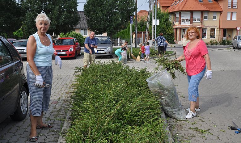 A nyugdíjas klub 12 tagja dolgozott a bokrok alatti gazoláson, ami kemény munka volt, hiszen néhány helyen a nagyon elszaporodott tarackot kellett kiszedni, de ahol kellett a bokrokat is megmetszették és a szemetet is összeszedték a környéken. Szerencsére eldobott papírok, csikkek egyre kevésbé jellemzőek, azonban még mindig sok az eldobott kicsi „egydekás” üveg.