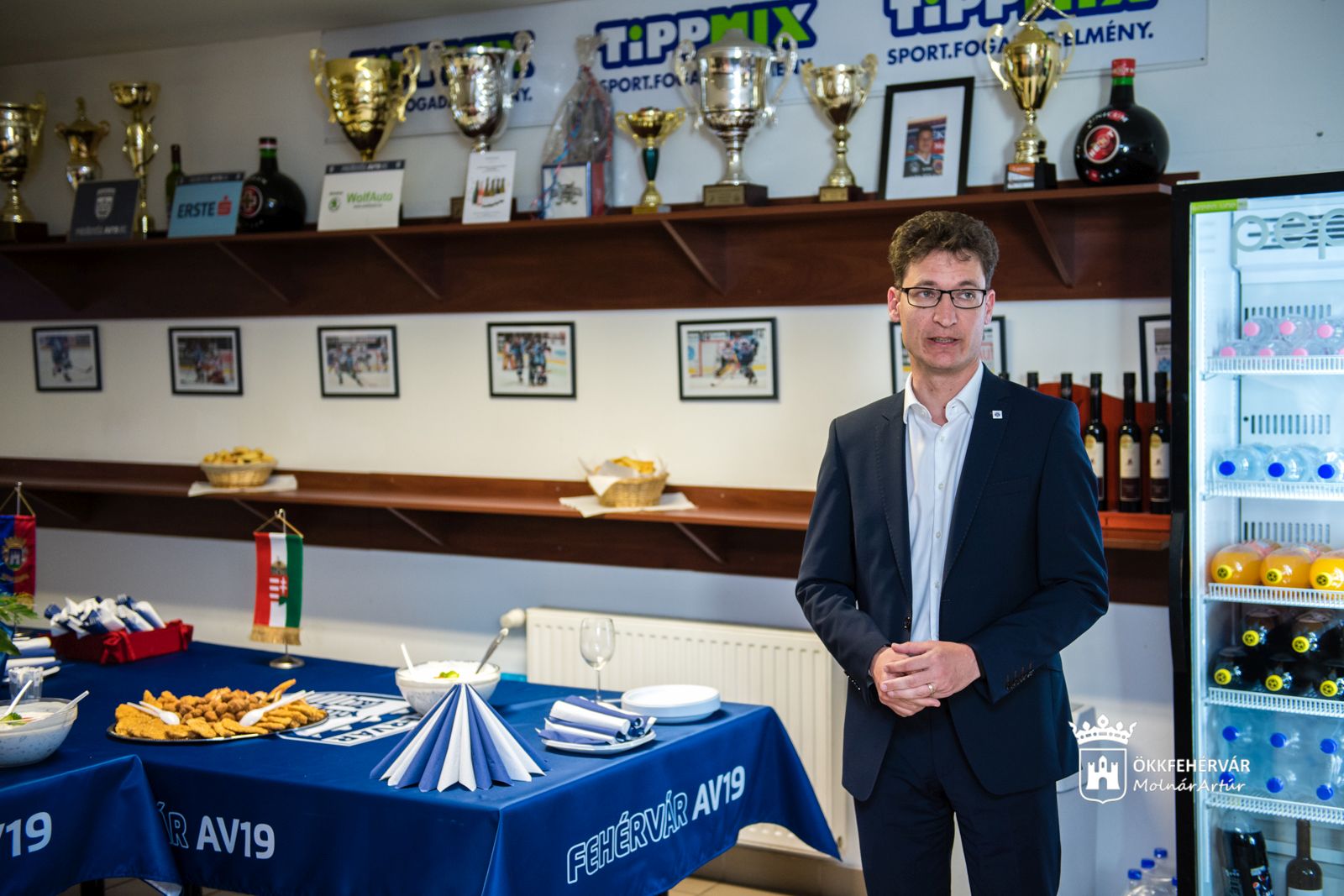 Székesfehérvár polgármestere, Cser-Palkovics András is köszöntötte a megjelenteket. „Nem kell különösebben ecsetelnem ebben a közegben, hogy ami ebben a csarnokban történik, annak óriási a városmarketing értéke. Hihetetlen elkötelezettséggel és lelkesedéssel áll a közönség a csapat mögött, már utánpótlás szinten is, ennek nemzetközi híre van. Nagyon fontos, hogy vannak fehérvári kiválóságok a játékosok között, a gyerekek számára ők a legnagyobb példaképek. Külön szeretném megköszönni a legrégebbi támogatóknak, egyben köszöntöm az újakat. Hogy ebben a sportágban jó helyre megy a támogatás, azt a világbajnokság is igazolta.”