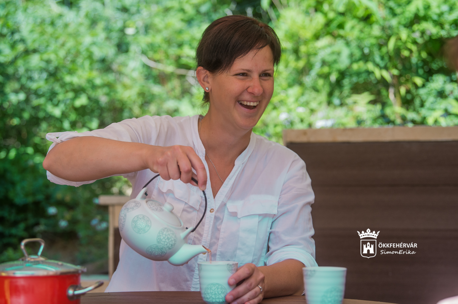 Rita apróbojtorján-teával várt bennünket: most lehet gyűjteni a sárga virágot, amit egyszerűen „zöld antibiotikumként” emleget a programokon, és minden rendszeresen túrázó kívülről fújja, mi mindenre jó a csodanövény.
