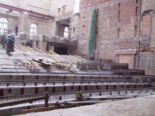 A rekonstrukció az eredetei ütemezésnek megfelelően halad, a bontásnak az utolsó fázisánál tartanak, ami a régi belső szerkezeti elemeket jelenti, de párhuzamosan már épül a nézőtéri szint és a színpad mögötti új rész. Kialakításra került a forgószínpad helye, dolgoznak a zsinórpadláson is, és pinceszinten lévő műszaki kiszolgáló helységek is épülnek. Néhány napon belül eldől, hogy a trafóhelységek hogyan helyezkedjenek el, itt kisebb problémák merültek fel, de ezeket is könnyen orvosoltuk. Problémát jelentettek még olyan dolgok, hogy az alap vizsgálata közben megállapítottunk statikai hiányosságokat, amikre nem lehetett készülni. Többletmunkát és –időt jelentettek ezek a kivitelezőnek és a tervezőnek.