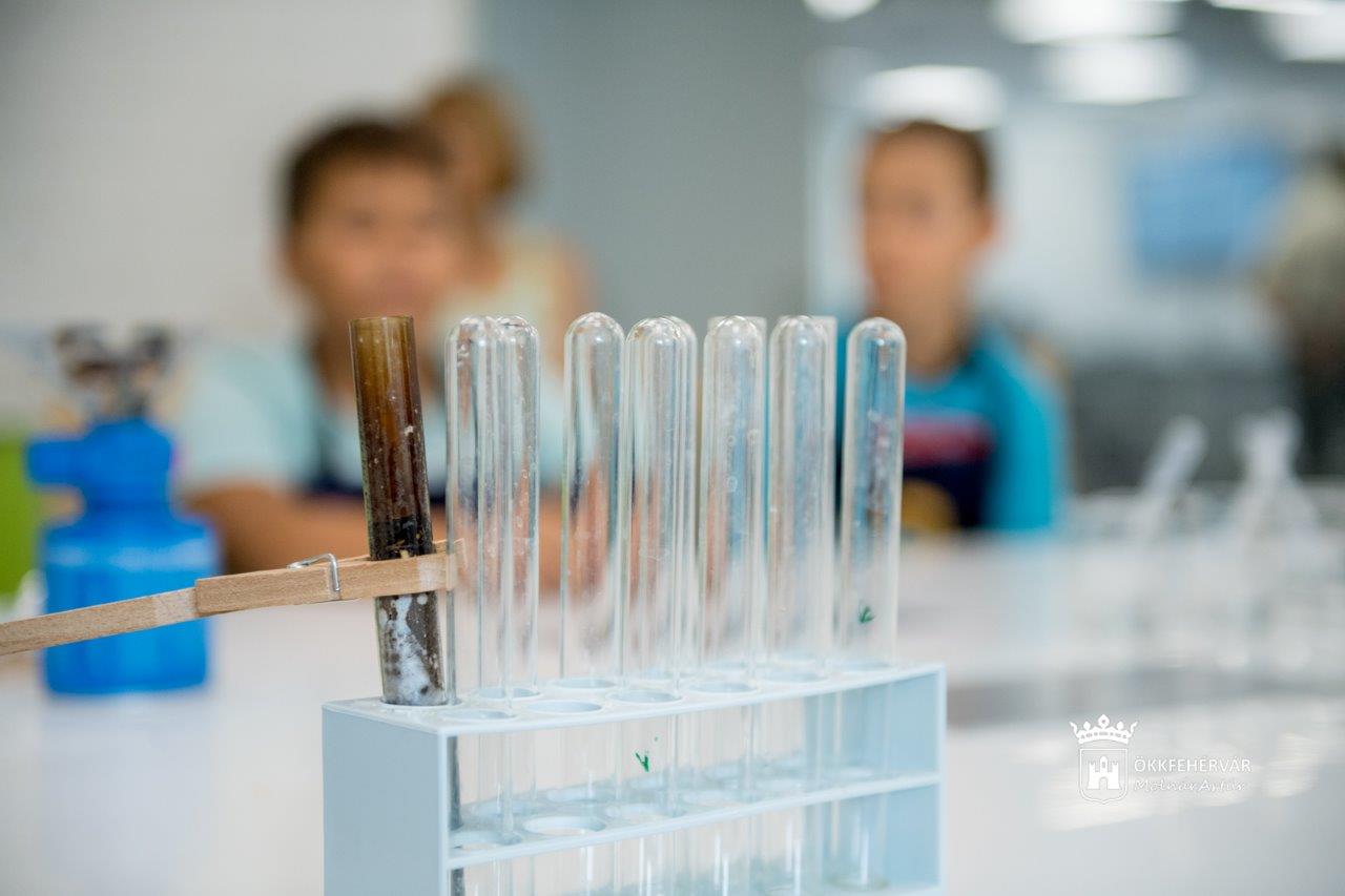 A természettudományos laborban Dr. Nyerkiné Alabert Zsuzsa vezetett kémiakísérletet. A gyerekek megszavazták, hogy a kémcsőbe piros gumicukorka kerüljön a kálium-klorátra. A heves lefolyású, kellemetlen szagokkal járó kísérlet izgalomba hozta a fiatal közönséget: a hevítés során a só megolvadt, az átadott oxigéntől az édesség szénné égett, még a kémcső is elrepedt.